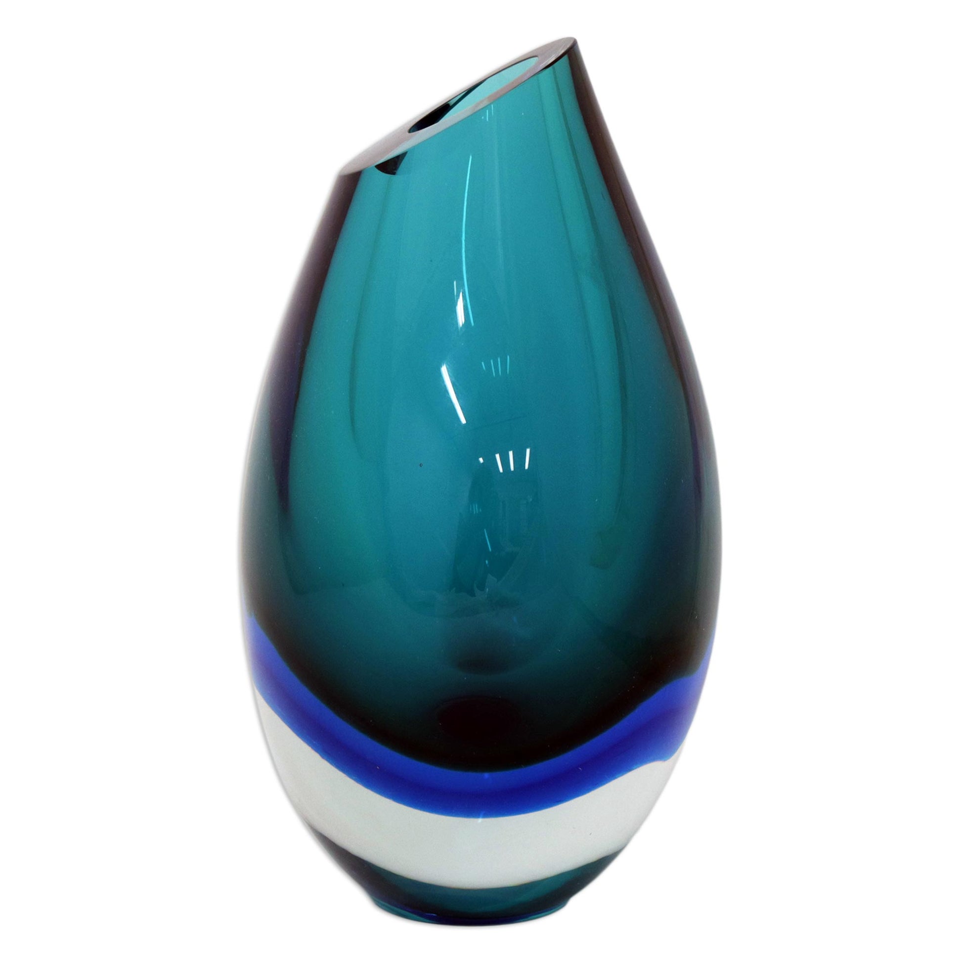 Ocean Sigh 9.5 inch Turquoise Murano Inspired Handblown Art Glass Vase