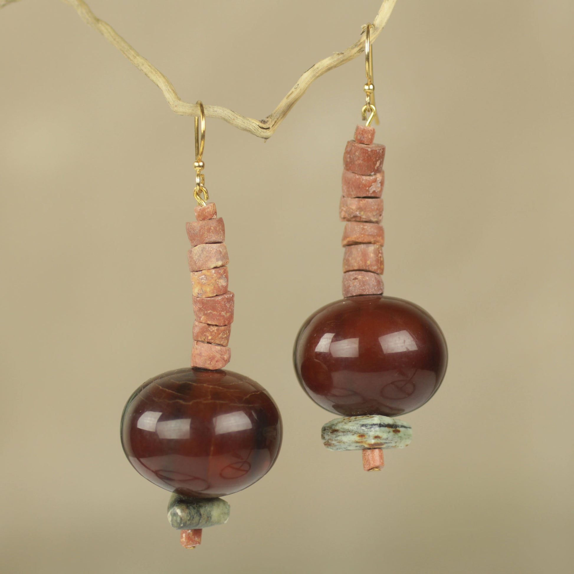 Ohemaa Kese Unique Beaded Dangle Earrings Handmade in Ghana
