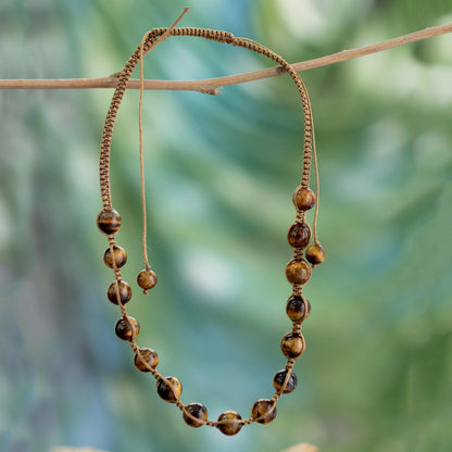 Oneness Artisan Crafted Cotton Shambhala-style Tigers Eye Necklace