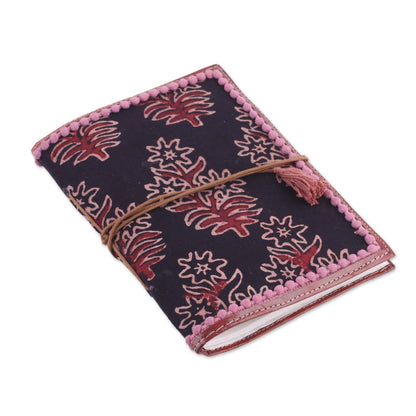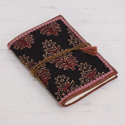 Onyx Garden Floral Leather Accent Cotton Journal in Onyx from India