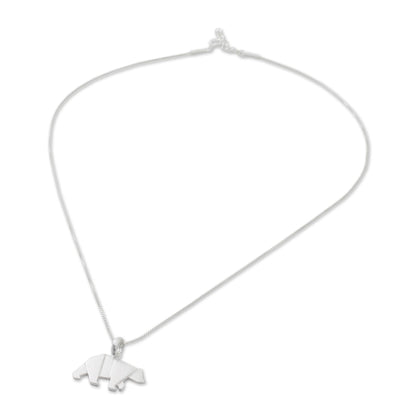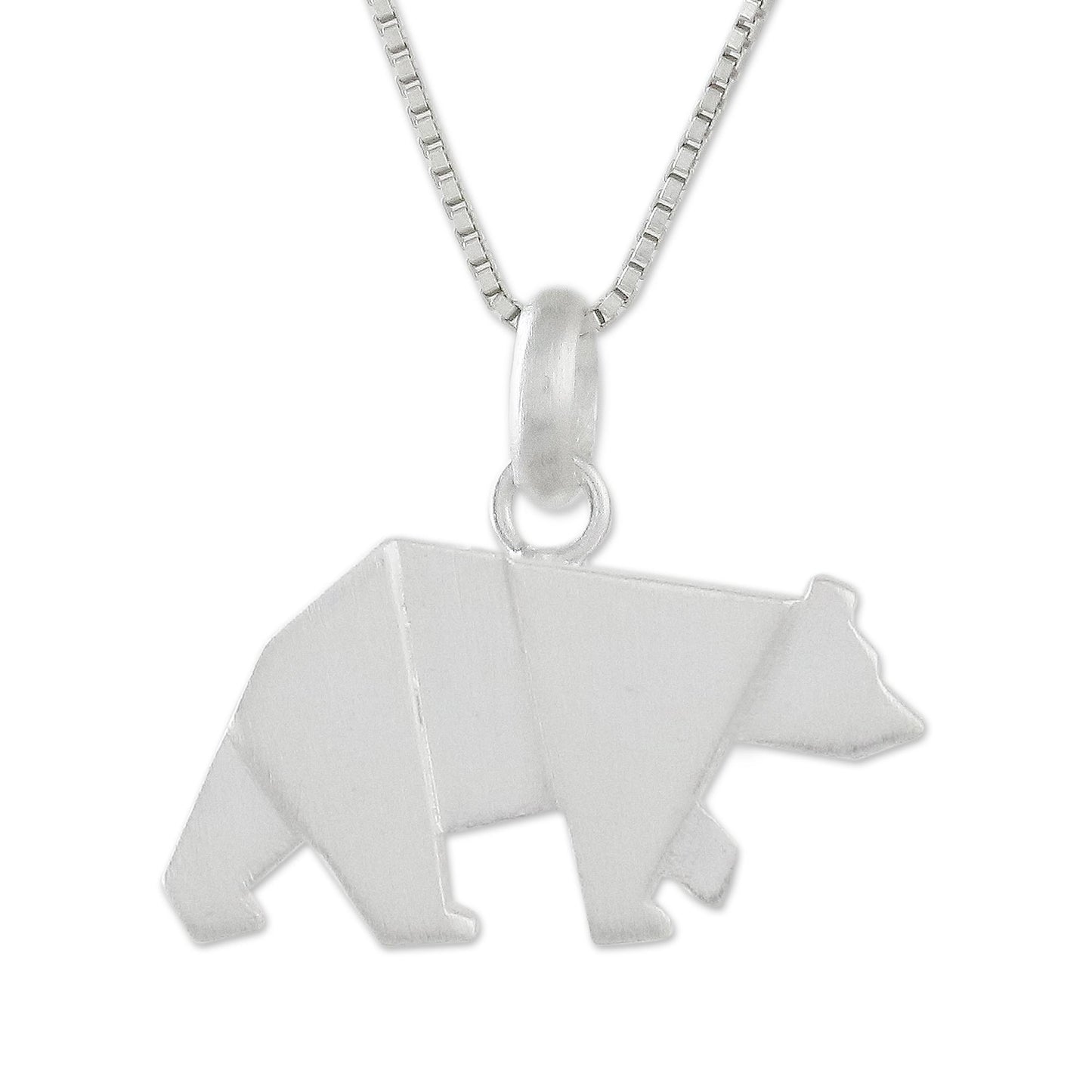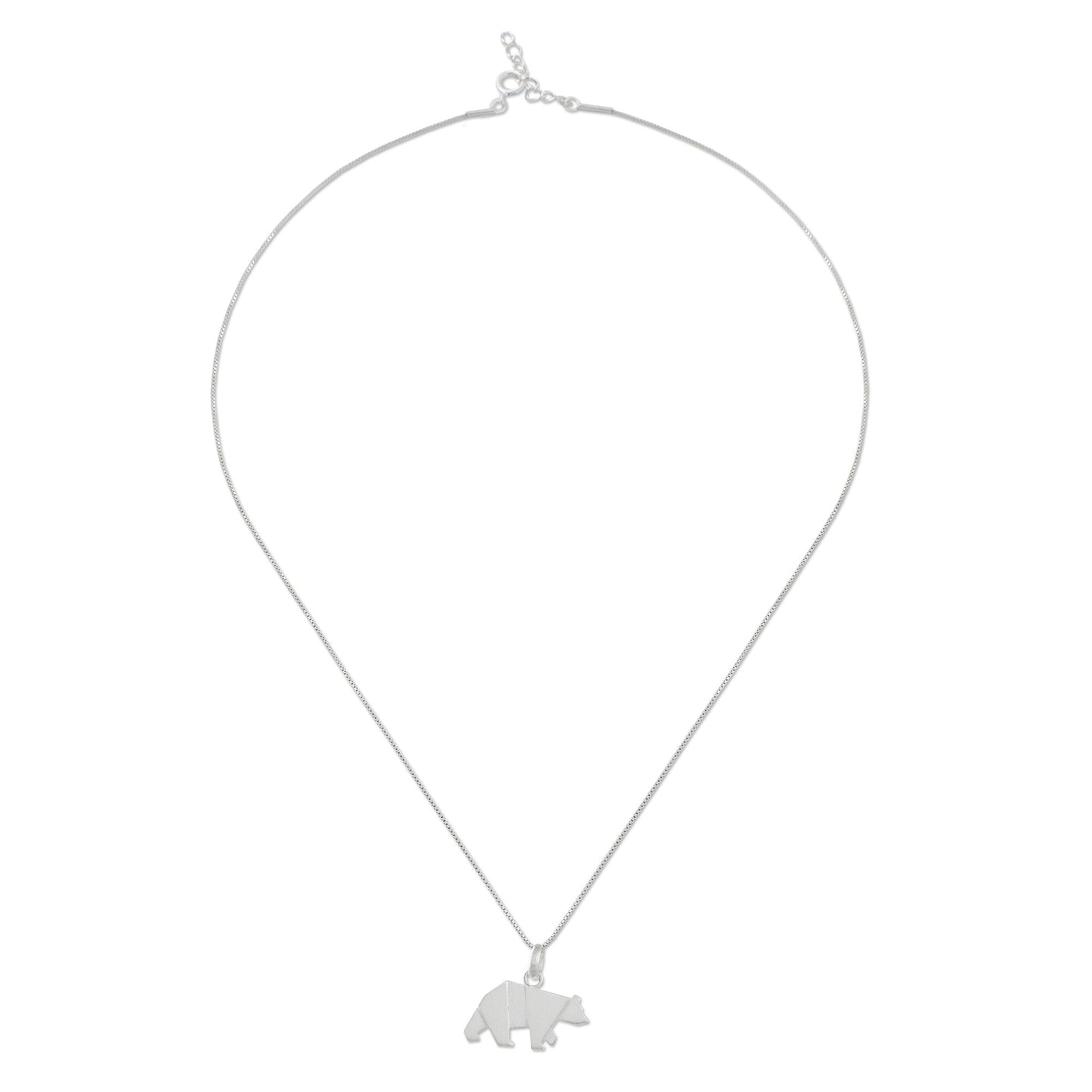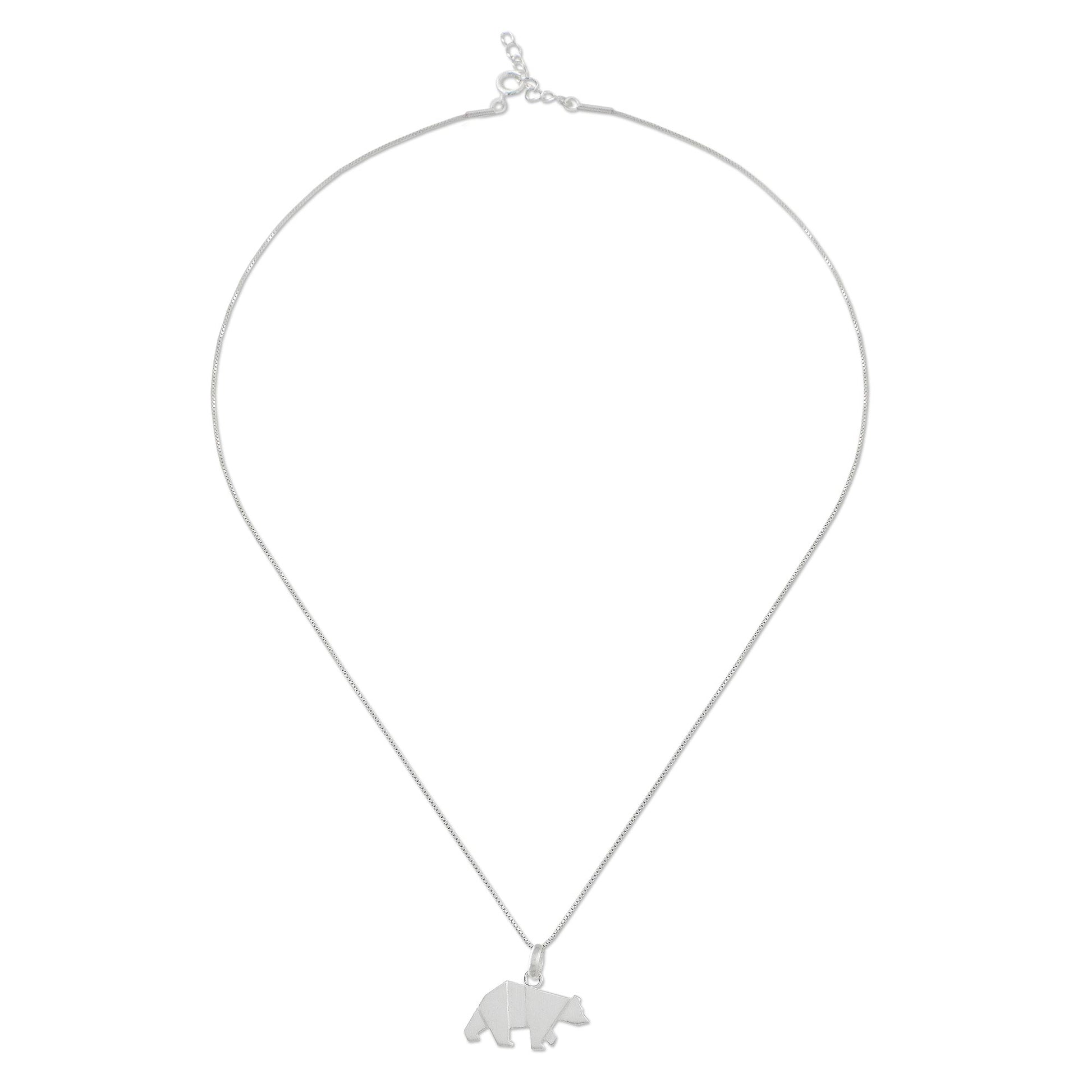 Reminiscent of the Japanese paper-folding art of origami, this pendant necklace has a geometric style. Thailand's Sarote Lochotinunt designs the bear-shaped pendant, which is hand crafted of sterling silver with a brushed satin finish. The pendant centers a sterling silver box chain.