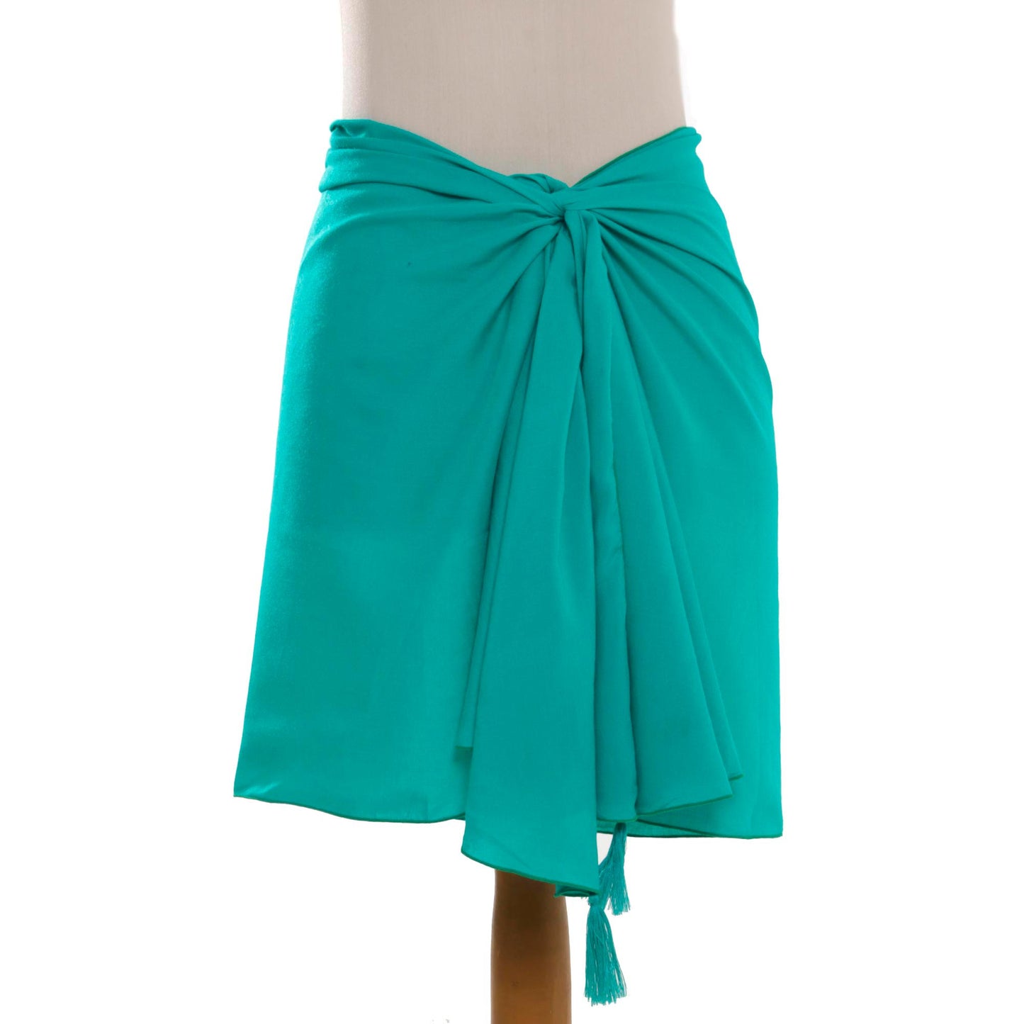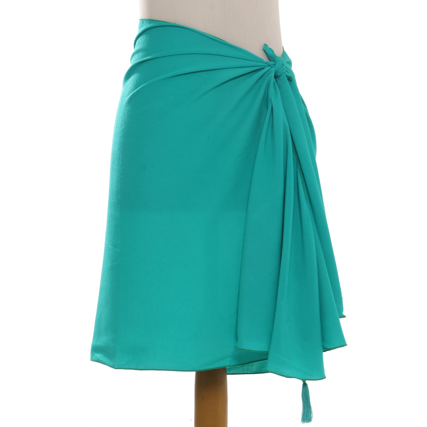 Handmade in Indonesia, this short, colorful sarong makes a perfect beach accessory. Artisan Prayascita Dewi crafts the attractive piece from 100% rayon in a cheerful shade of turquoise green.