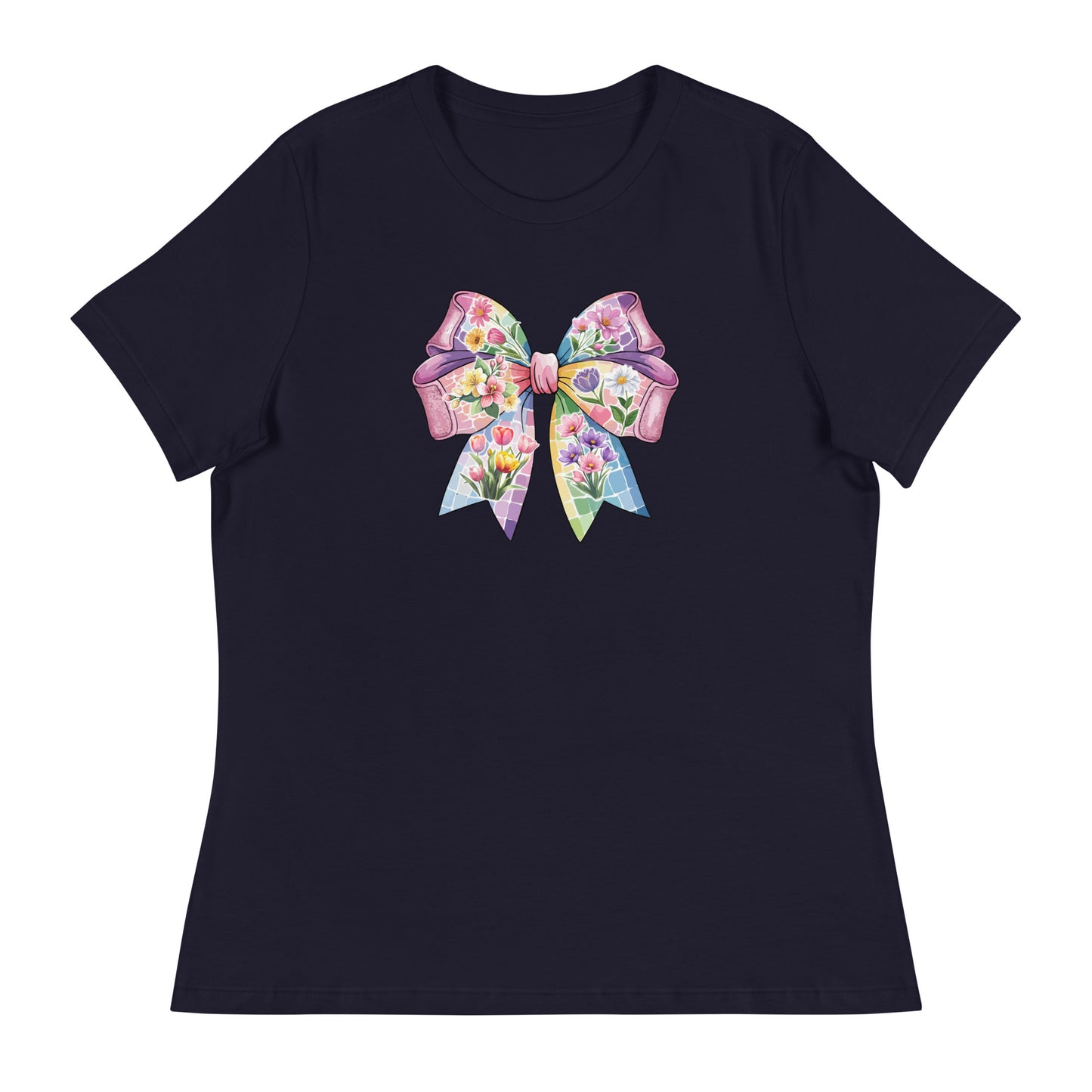 Pink Flower Springtime Bow Women's Relaxed T-Shirt