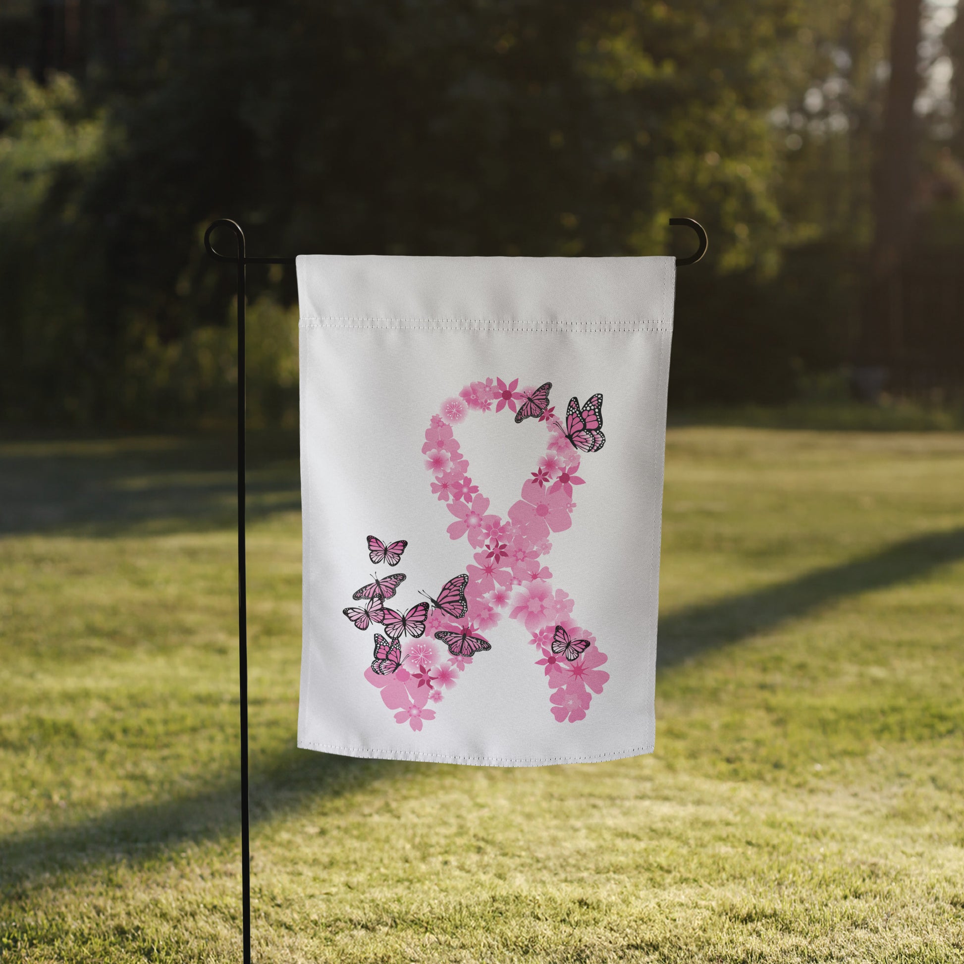 Pink Ribbon Butterflies Take Flight Garden Flag