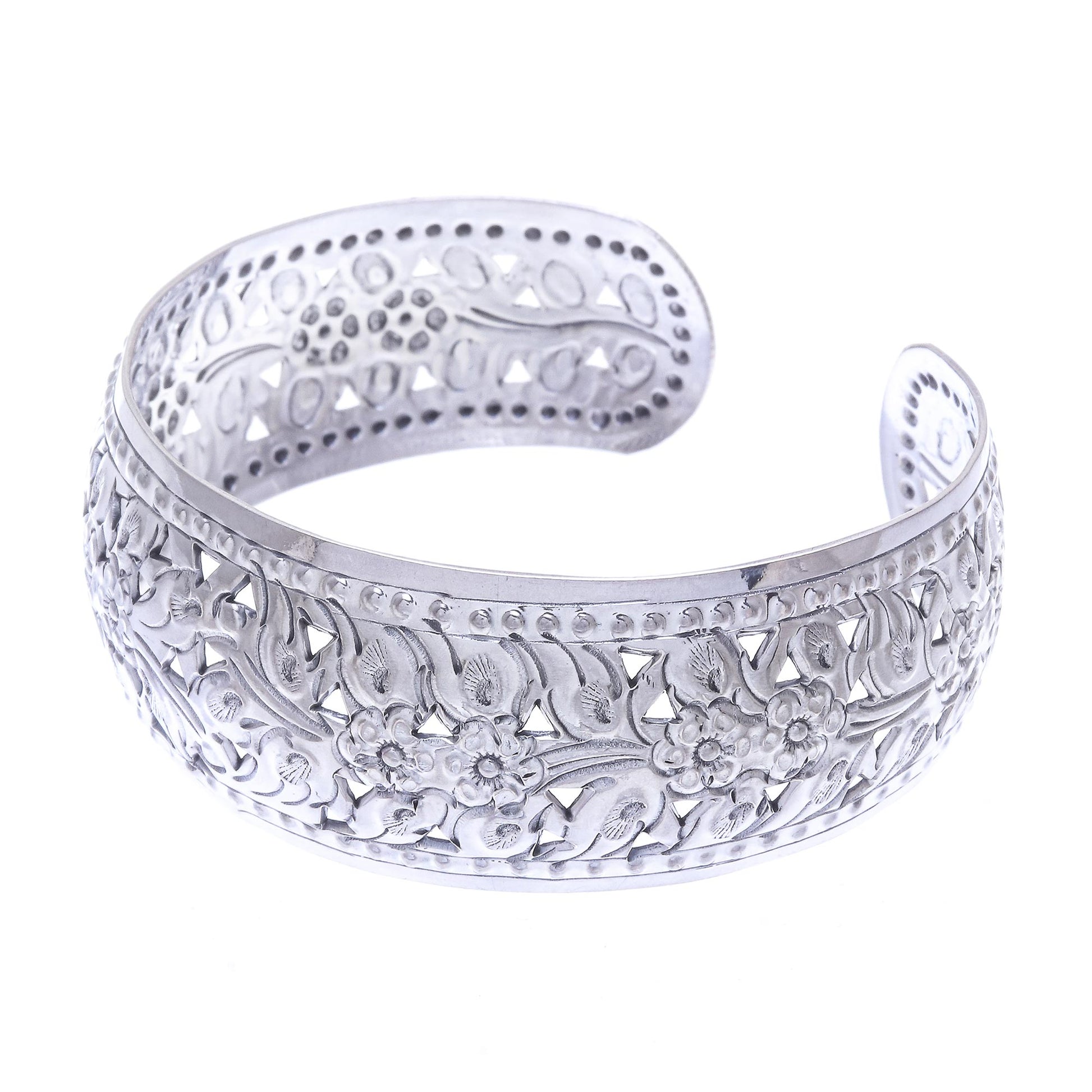 Precious Garland Unique Floral Sterling Silver Cuff Bracelet
