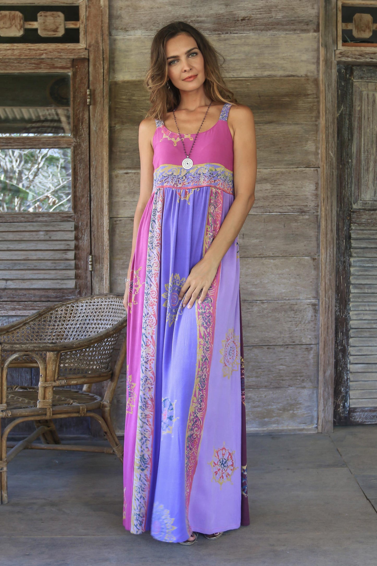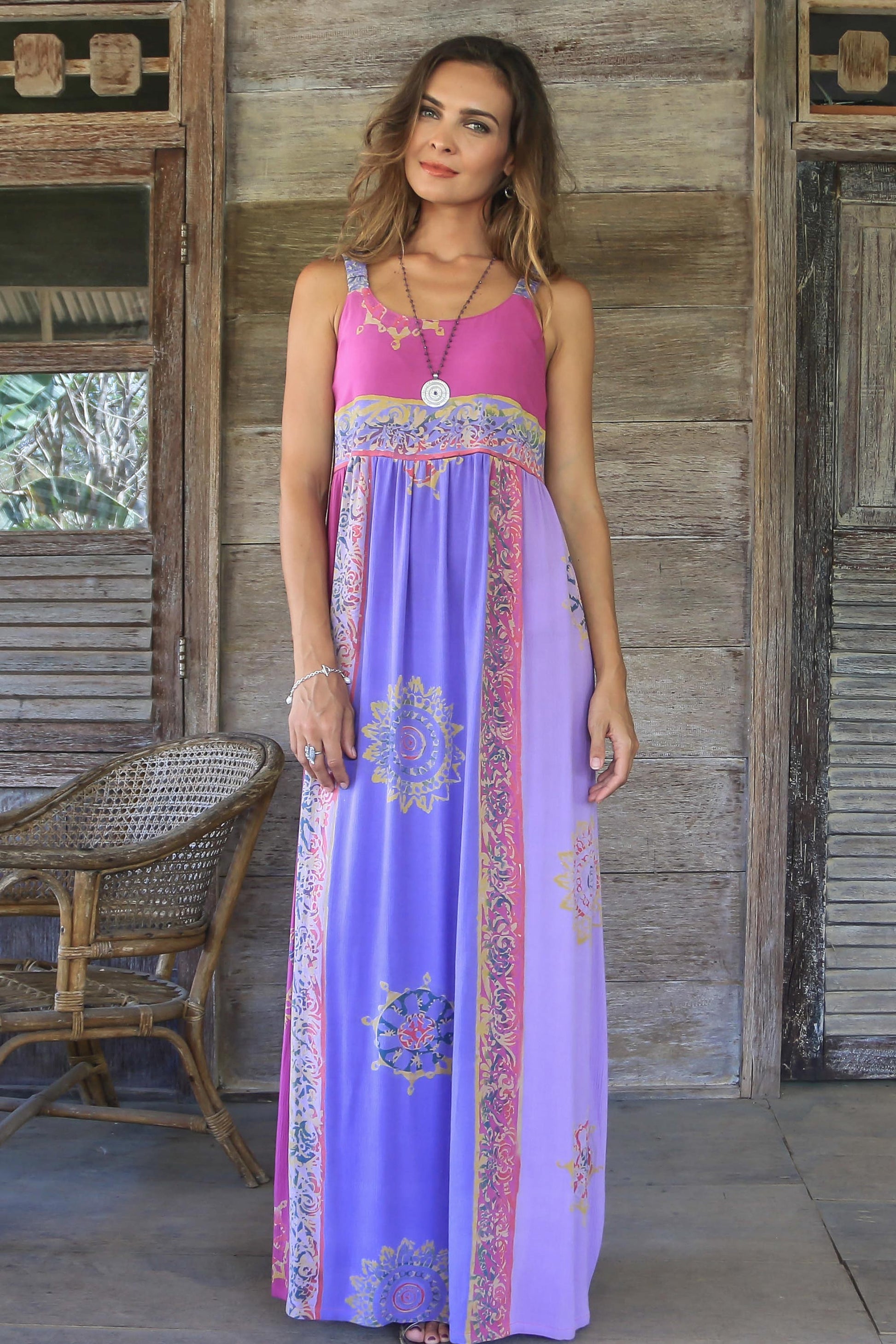 Primavera Fuchsia and Purple Batik Rayon Sundress from Bali