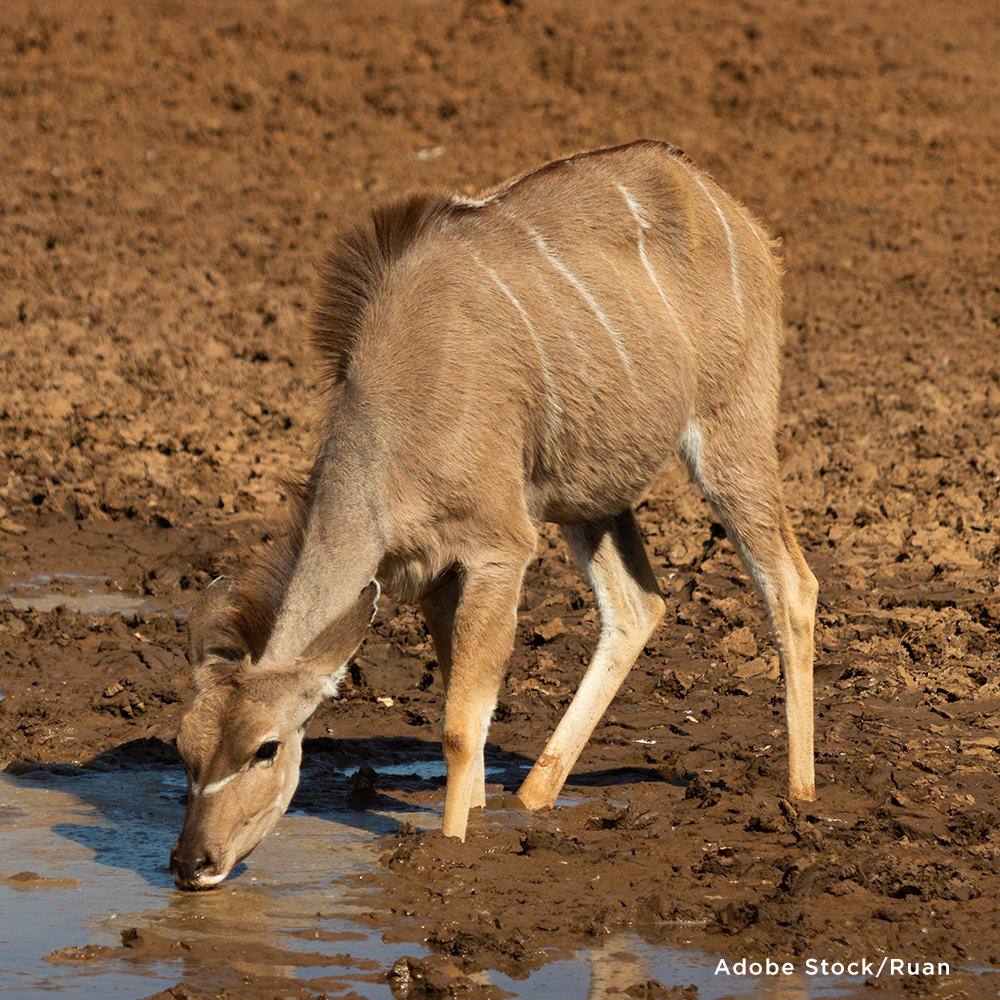 When water goes, so does food. Dried-up natural springs and ponds destroy food sources. Other animals, trees, and ground cover for food are dying out. A lack of fresh drinking water is an immense threat to wildlife everywhere. That's why Greater Good Charities is dedicated to protecting our planet's wildlife and ensuring they survive and remain healthy for future generations.
