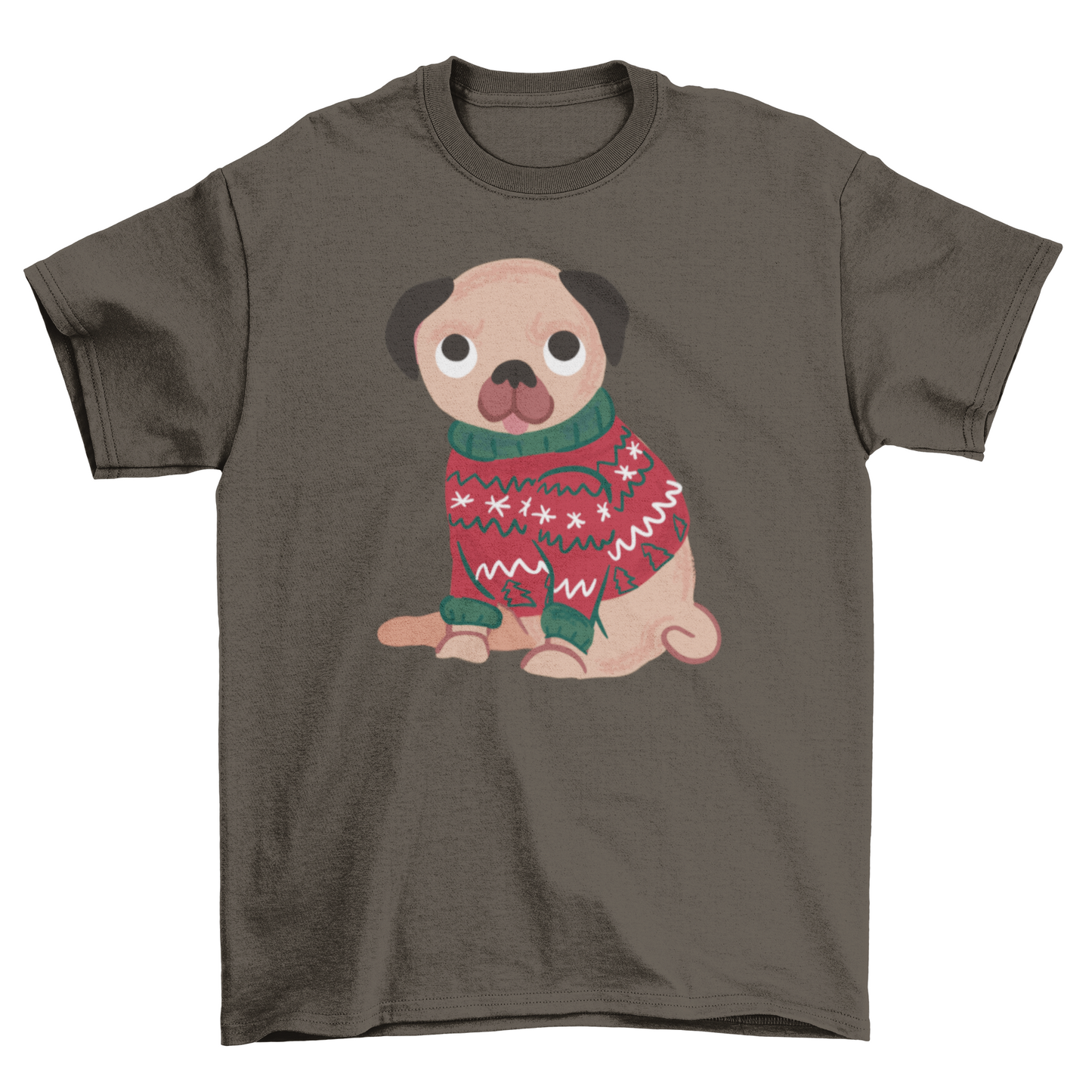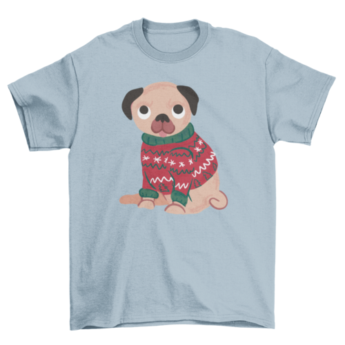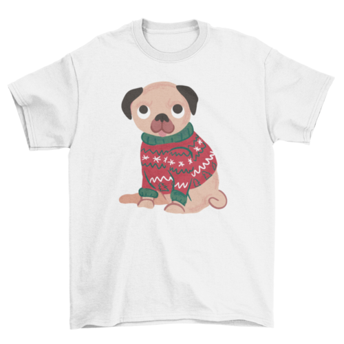 Get into the holiday spirit with this adorable crew neck short sleeve tee featuring a pug dressed in a festive ugly Christmas sweater! Made from soft, breathable fabric, this playful design is perfect for spreading cheer and turning heads at holiday gatherings. A must-have for pug lovers and holiday enthusiasts alike!