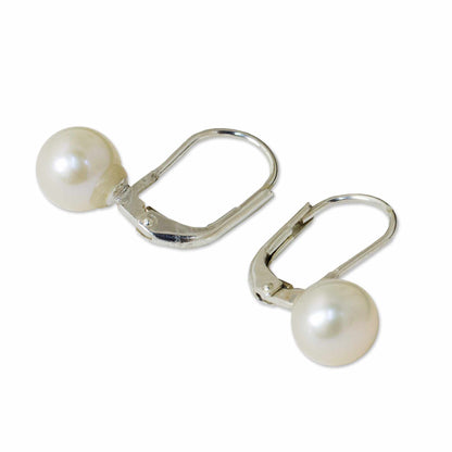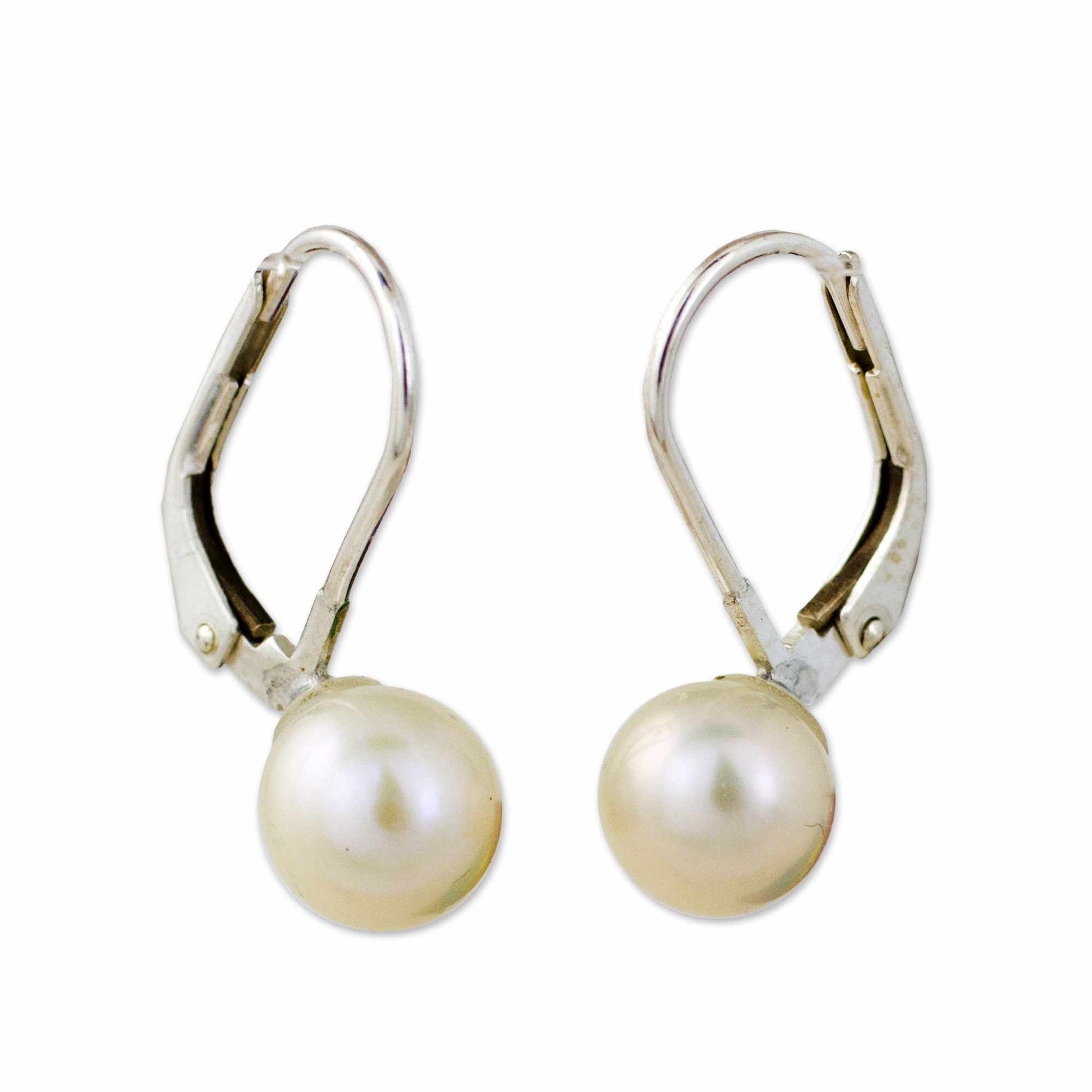 With a simple design by Thai artist Matta, these earrings are as magnificent as they are authentic. Handcrafted from cultured freshwater pearl with sterling silver lever-back hooks, these drop earrings shine and glow brilliantly with a natural white hue.