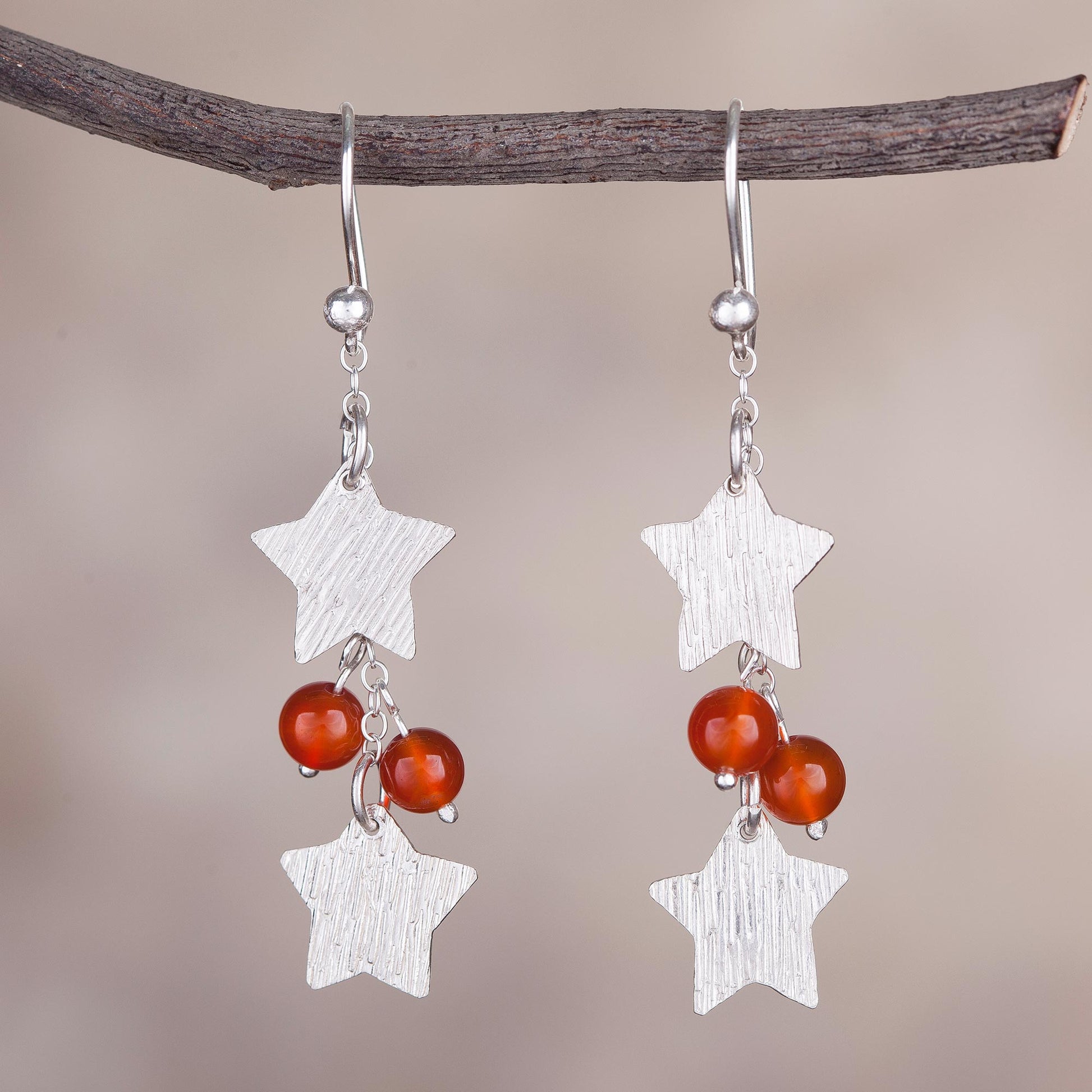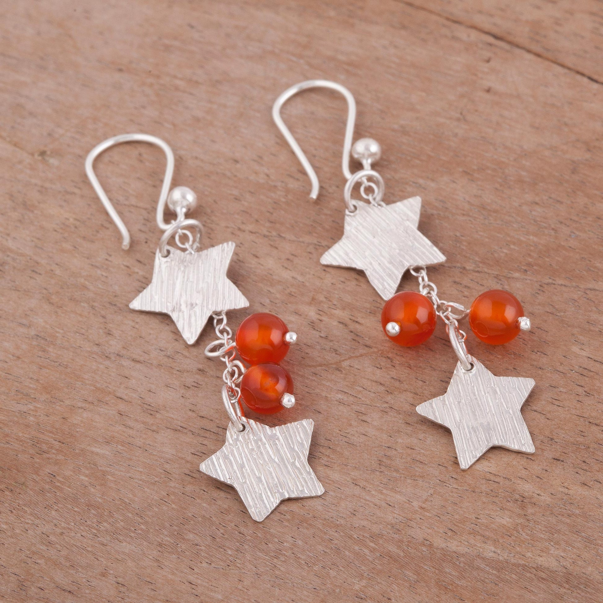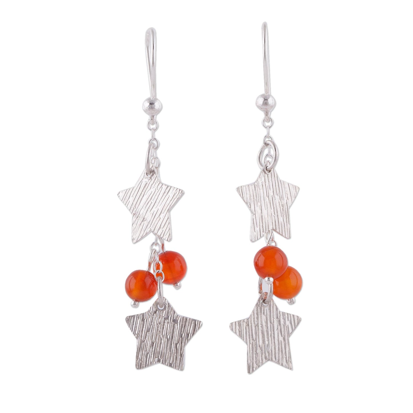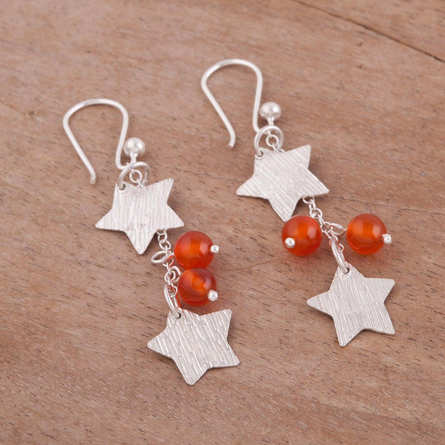 Racing Stars Carnelian and Silver Star-Shaped Dangle Earrings from Peru