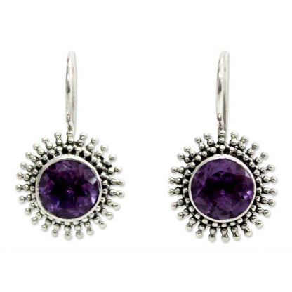 Radiant Sunbeams Amethyst & Silver Drop Earrings
