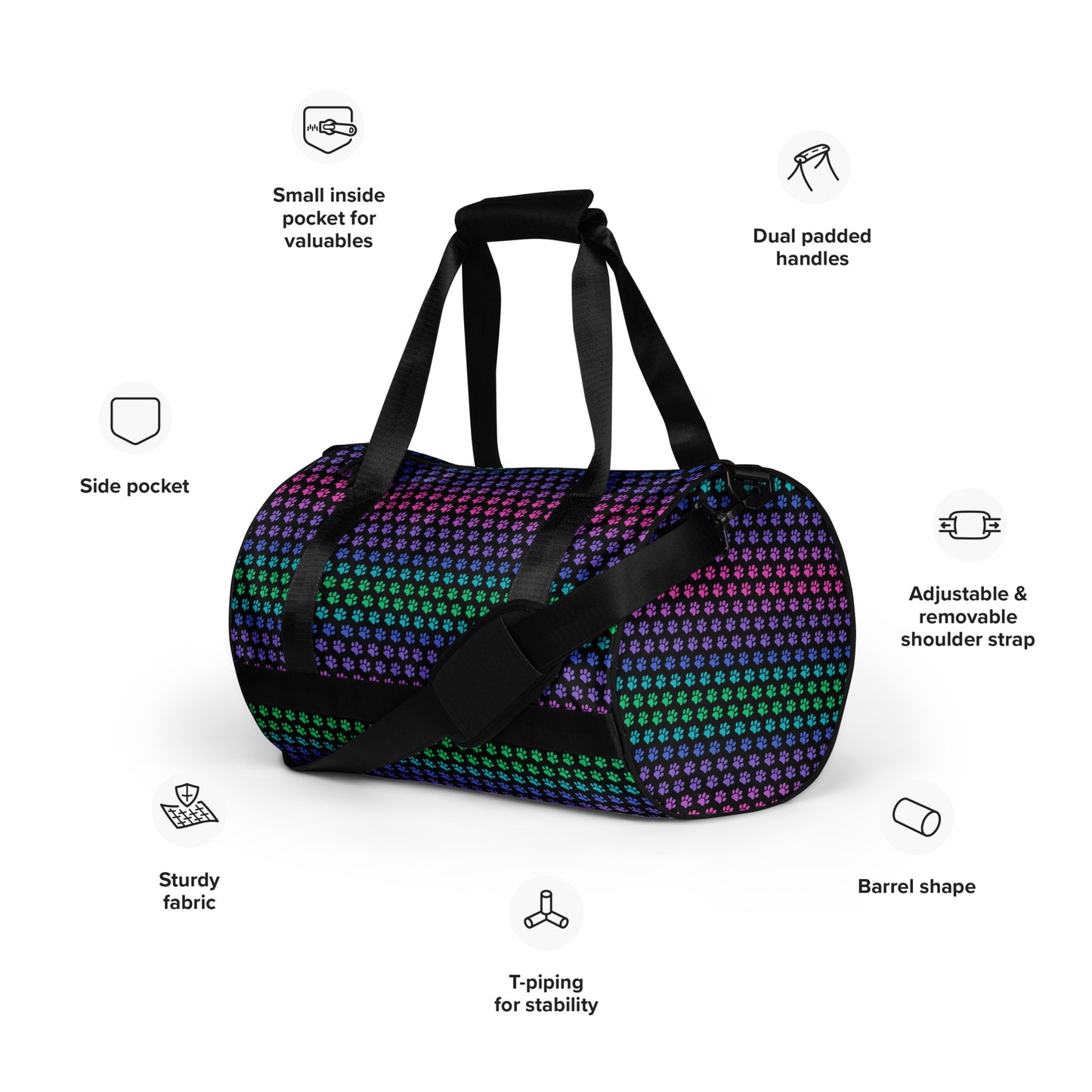 Made from 100% polyester and sturdy, water-resistant fabric, this bag is fun meets function. And it’s got pockets! This bag is perfect for any over night stay or for taking to the gym or just traveling in general.