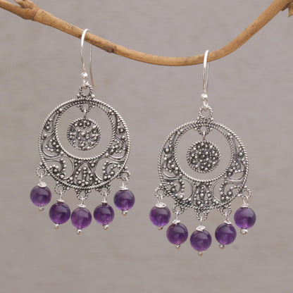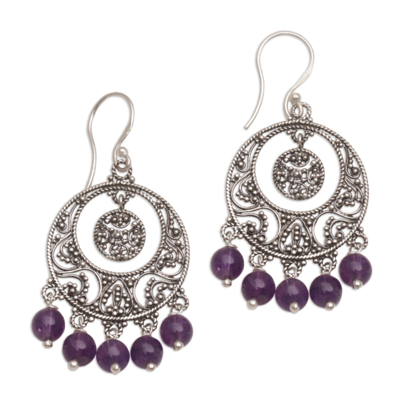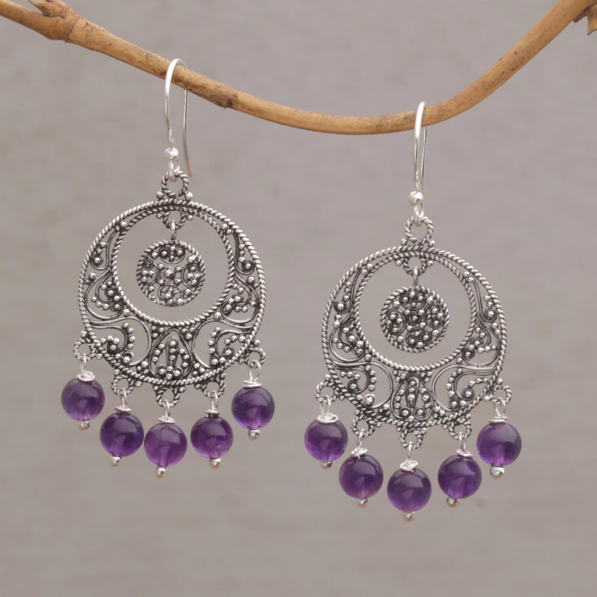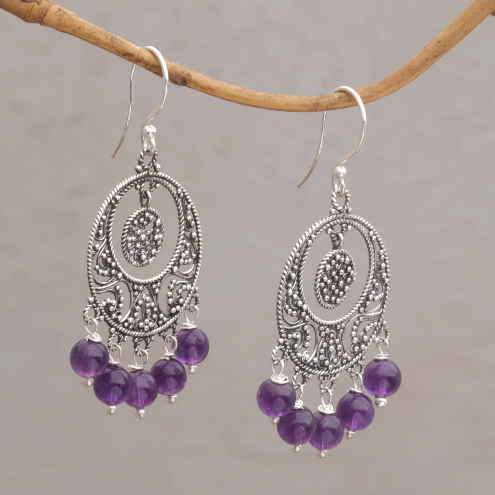 Raining Victory Amethyst and Sterling Silver Chandelier Earrings from Bali