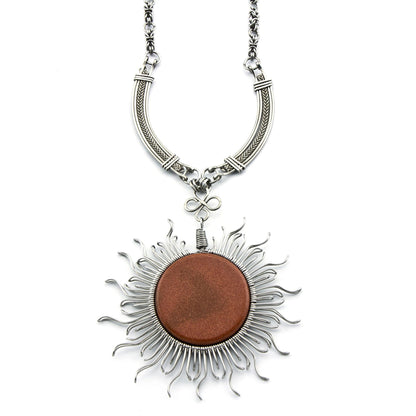 Rays of the Sun Stainless Steel Goldstone Statement Necklace from Brazil