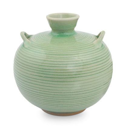 Rice Fields Artisan Crafted Green Thai Celadon Ceramic Bud Vase