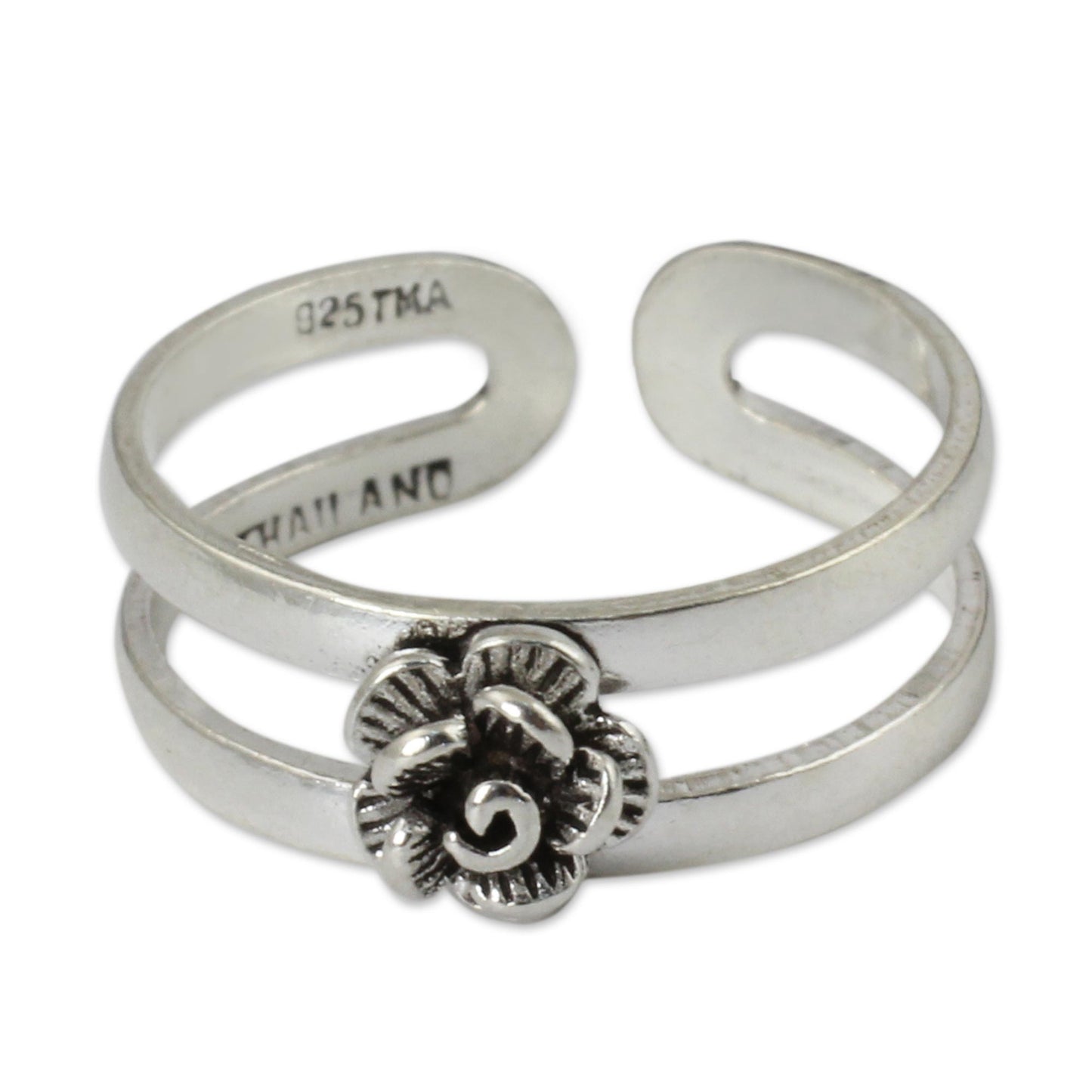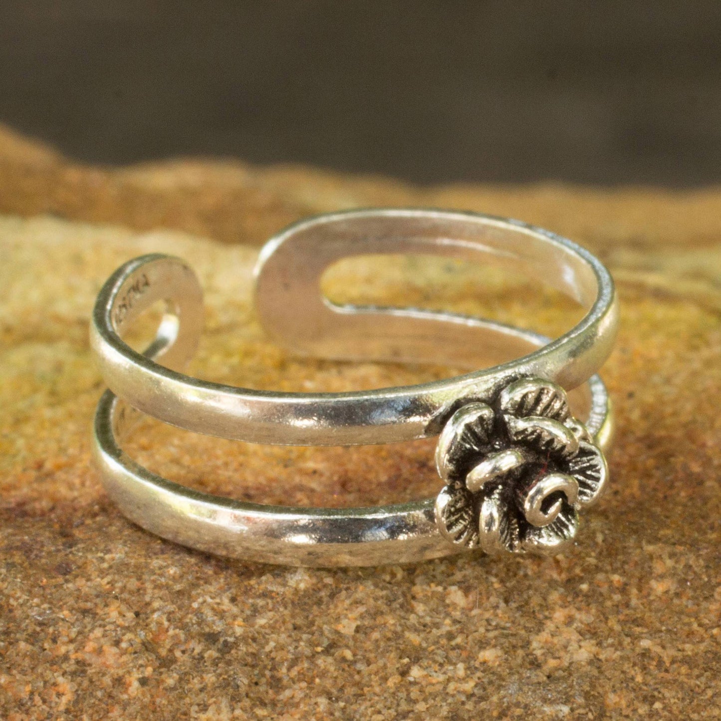 Romantic Rose Toe Ring in Sterling Silver Thai Artisan Jewelry