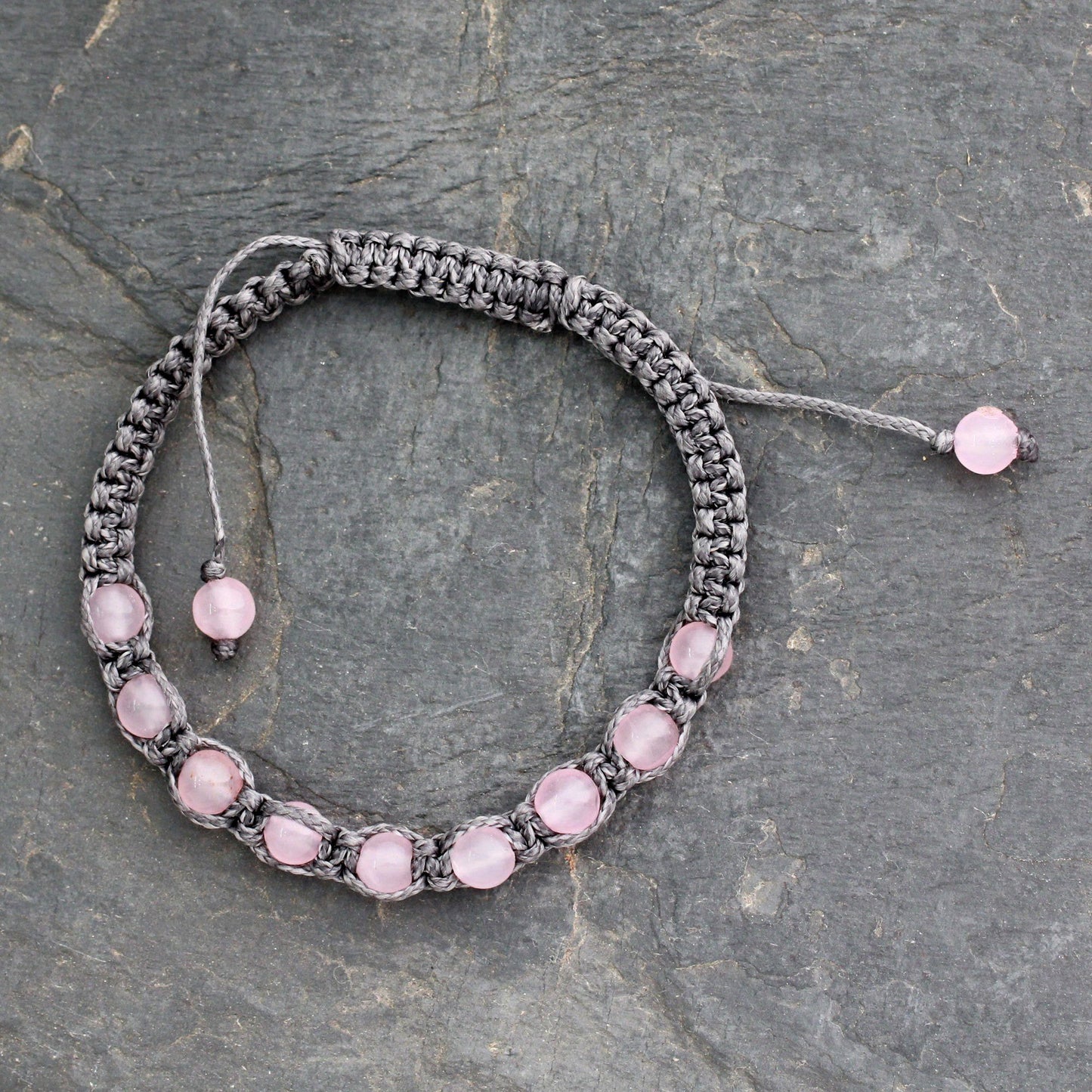 Rituu crafted this adjustable macramé bracelet by hand. Featuring rose quartz, thought to ignite the pink flame of love.