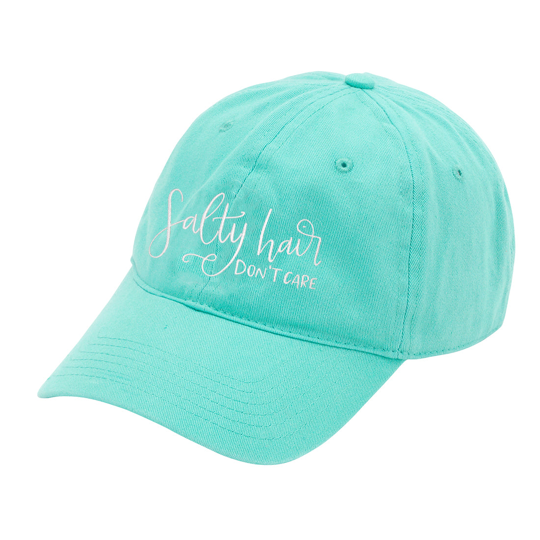 With an adjustable strap that allows a customizable fit, this hat is perfect for the beach or casual wear. This is a cute mint green hat embroidered in white that shows off your love of the ocean and all things beachy.