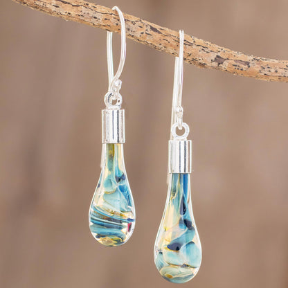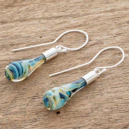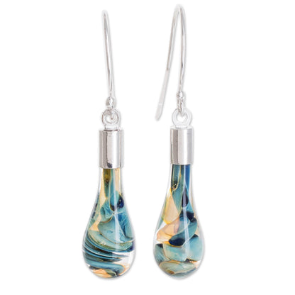 Sand and Sea Handmade Art Glass Dangle Earrings from Costa Rica