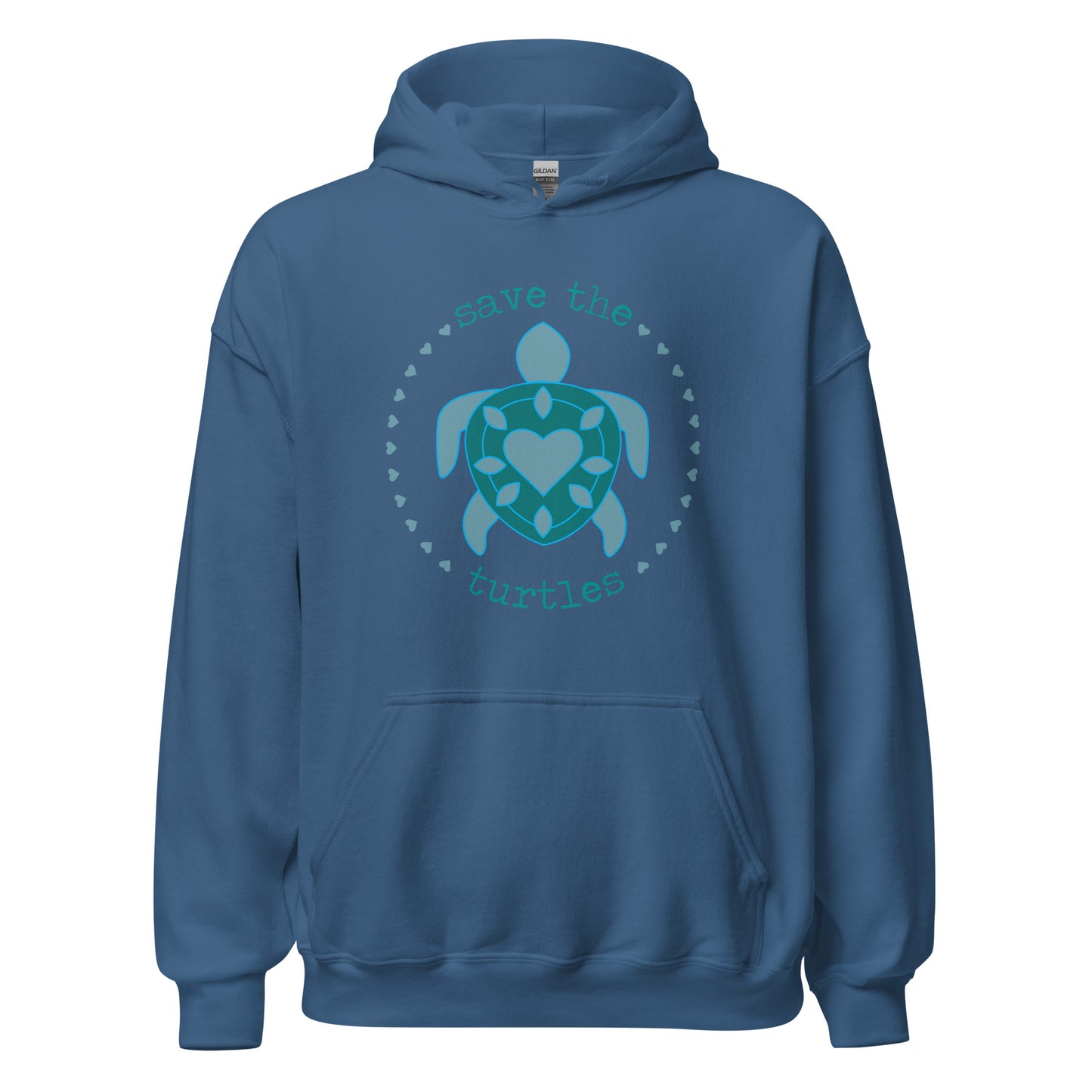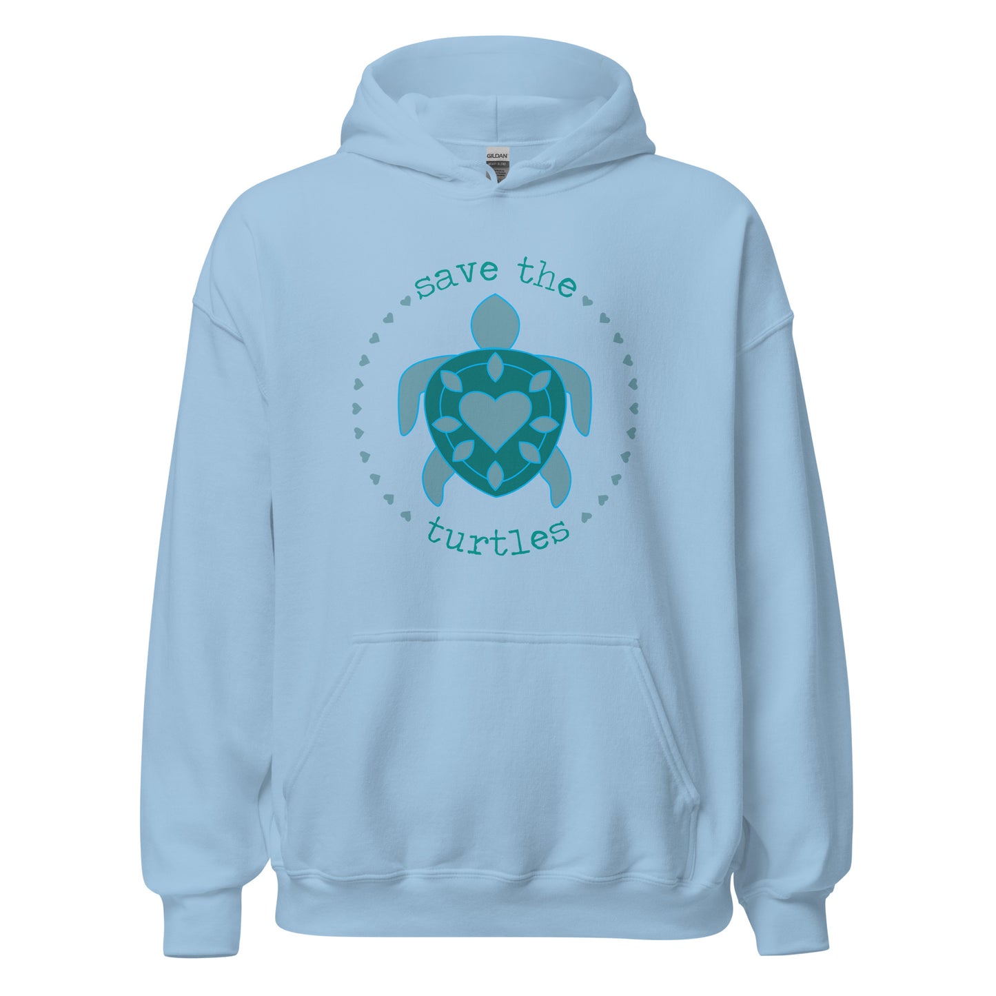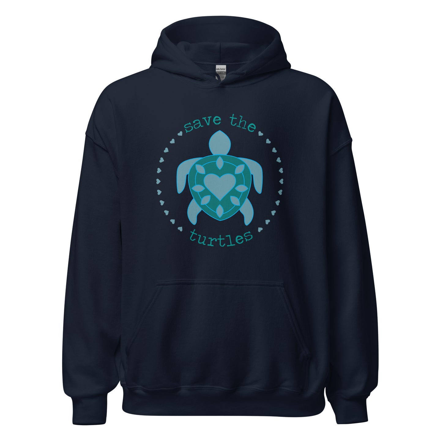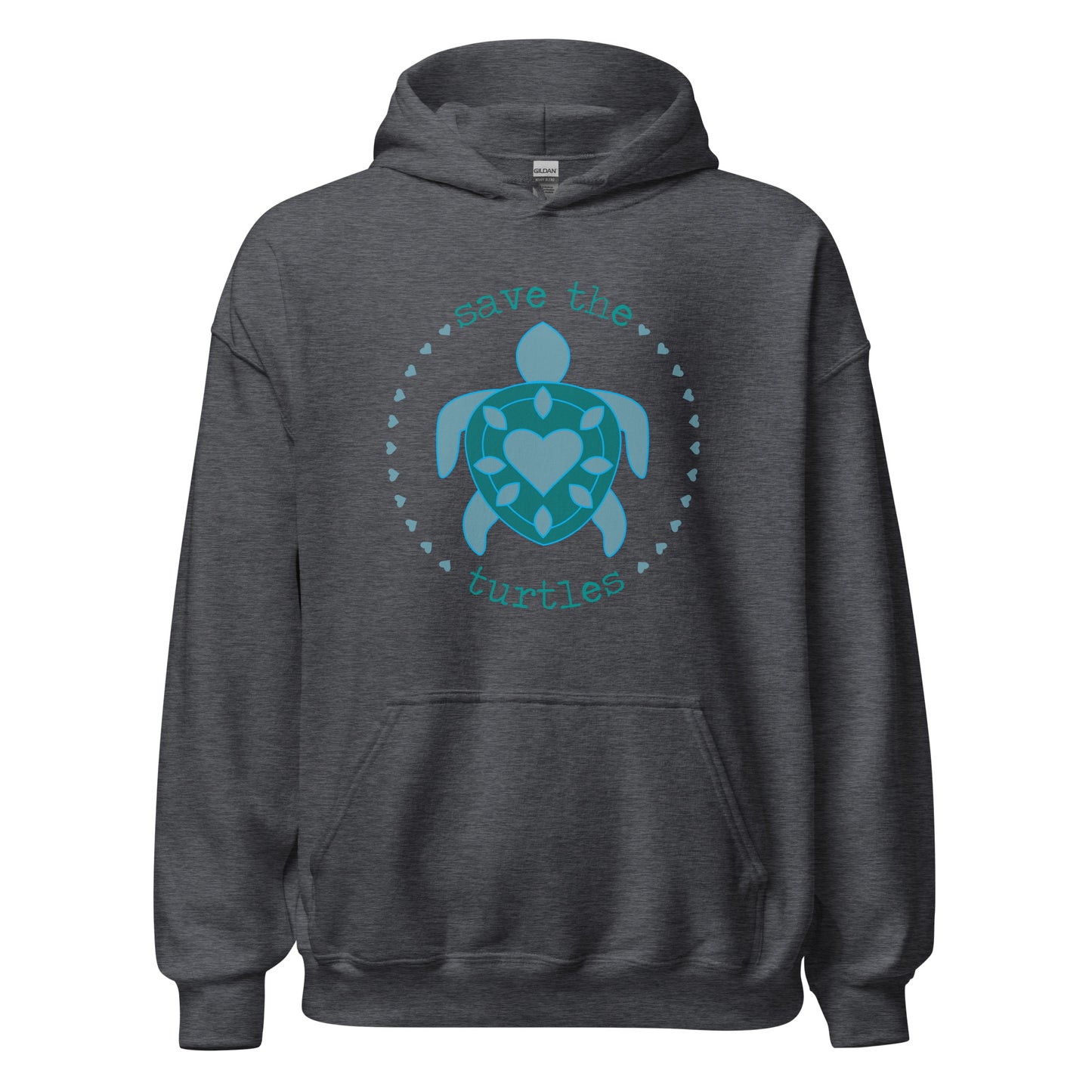 The "Save the Turtles" hoodie features an adorable turtle circled with hearts. It's not only comfortable and stylish but sends a powerful message about the importance of protecting our planet's marine life. This hooded sweatshirt is a great way to spread awareness and make a statement about your commitment to the cause. With each purchase we'll give an extra $5 donation to Project Peril: Save the Sea Turtle on your behalf. Click here to learn more about this amazing cause.    • 50% pre-shrunk cotton, 50% polyester