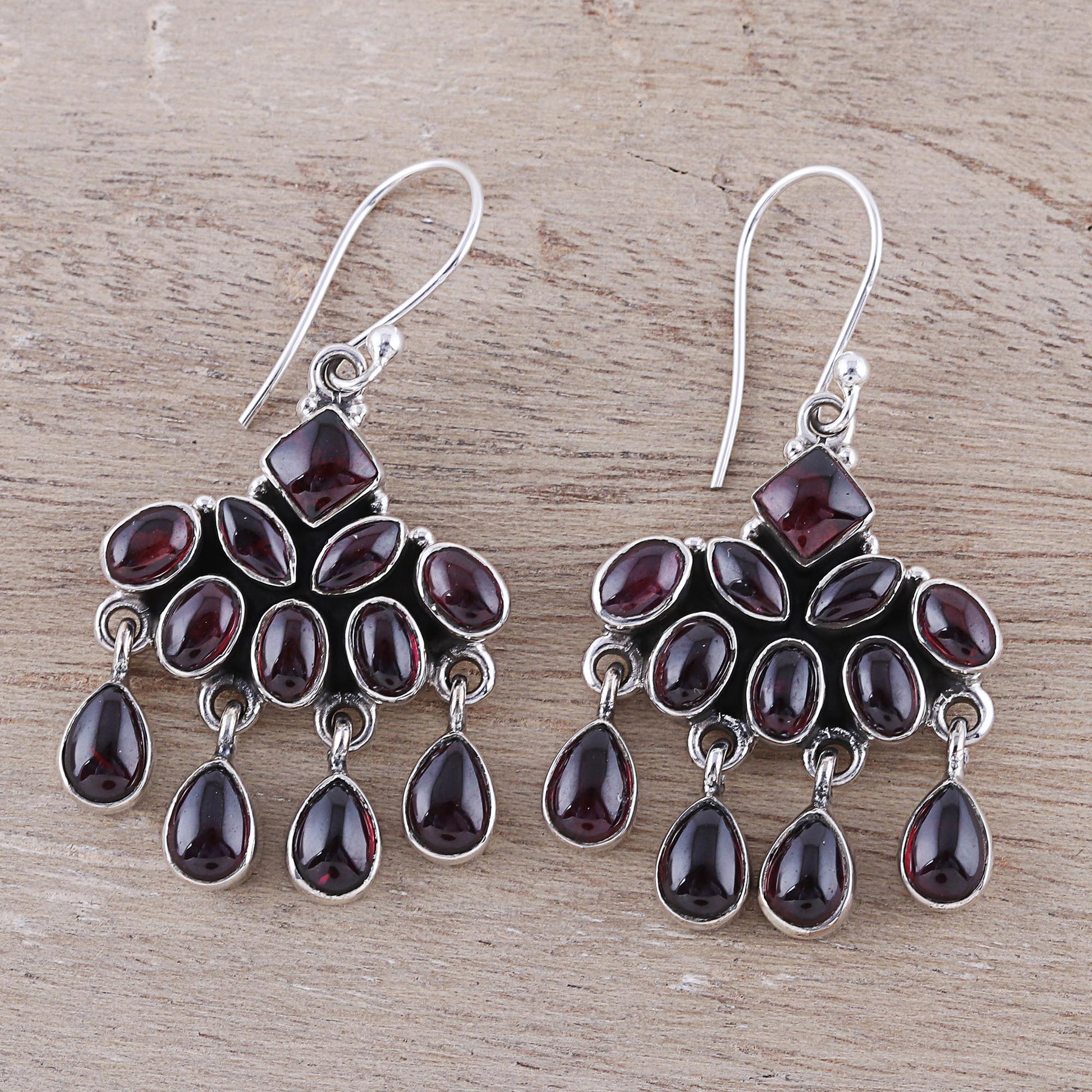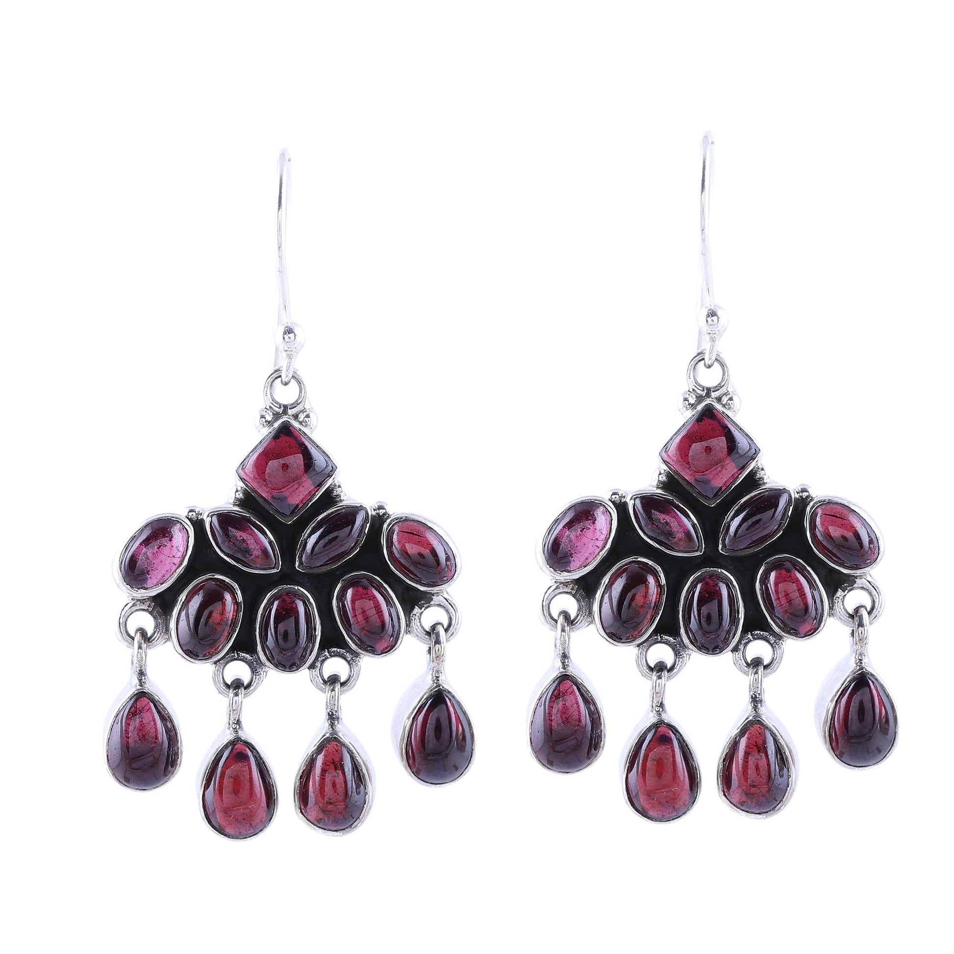 Scarlet Fantasy Garnet Waterfall Earrings from India