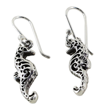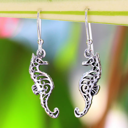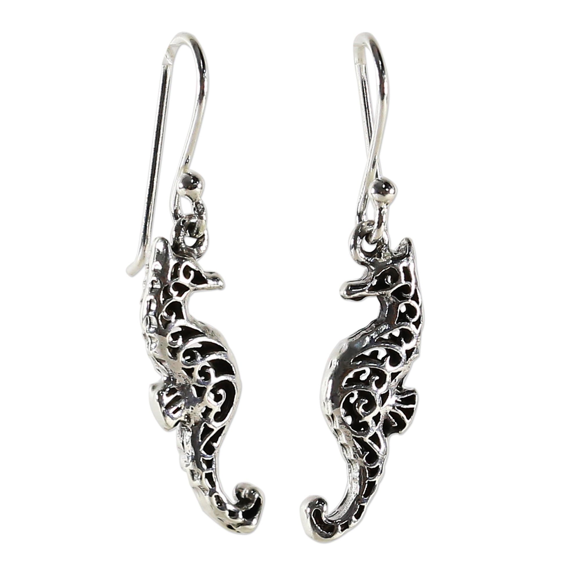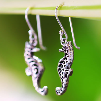 Seahorse Couple Sterling Silver Dangle Earrings Seahorse Shape from Thailand