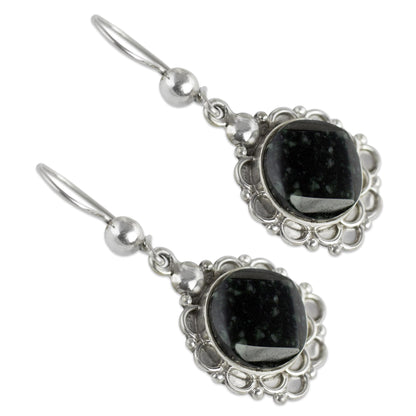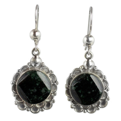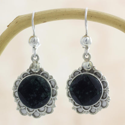 Shadow Blossom Silver and Dark Green Jade Floral Earrings