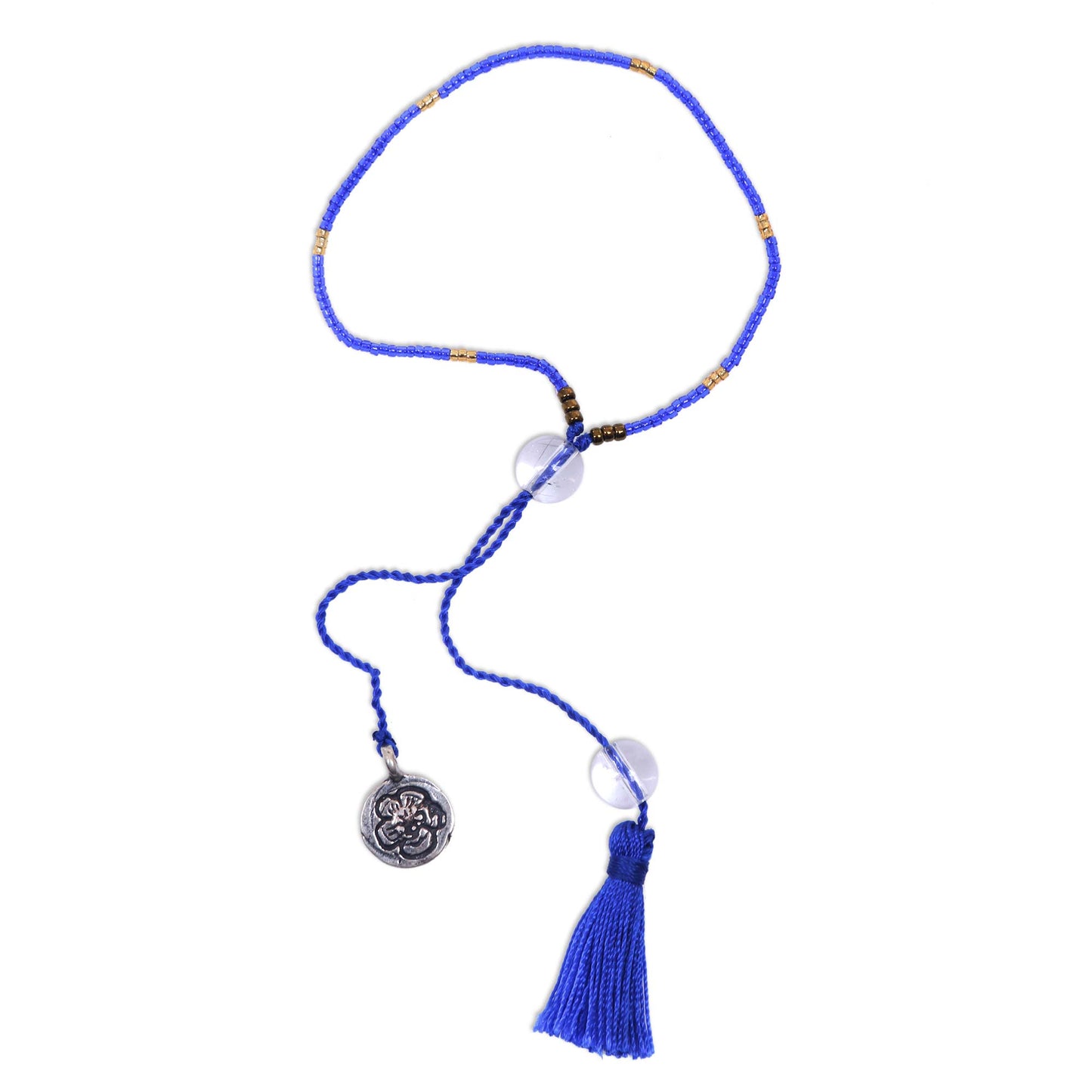 - materials: Quartz, 925 sterling silver charm, glass beads, nylon cord