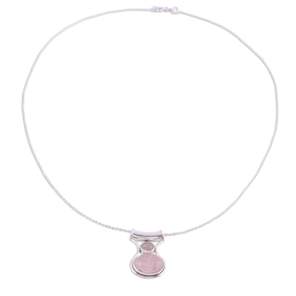Simply Scintillating Rose Quartz and Sterling Silver Modern Pendant Necklace