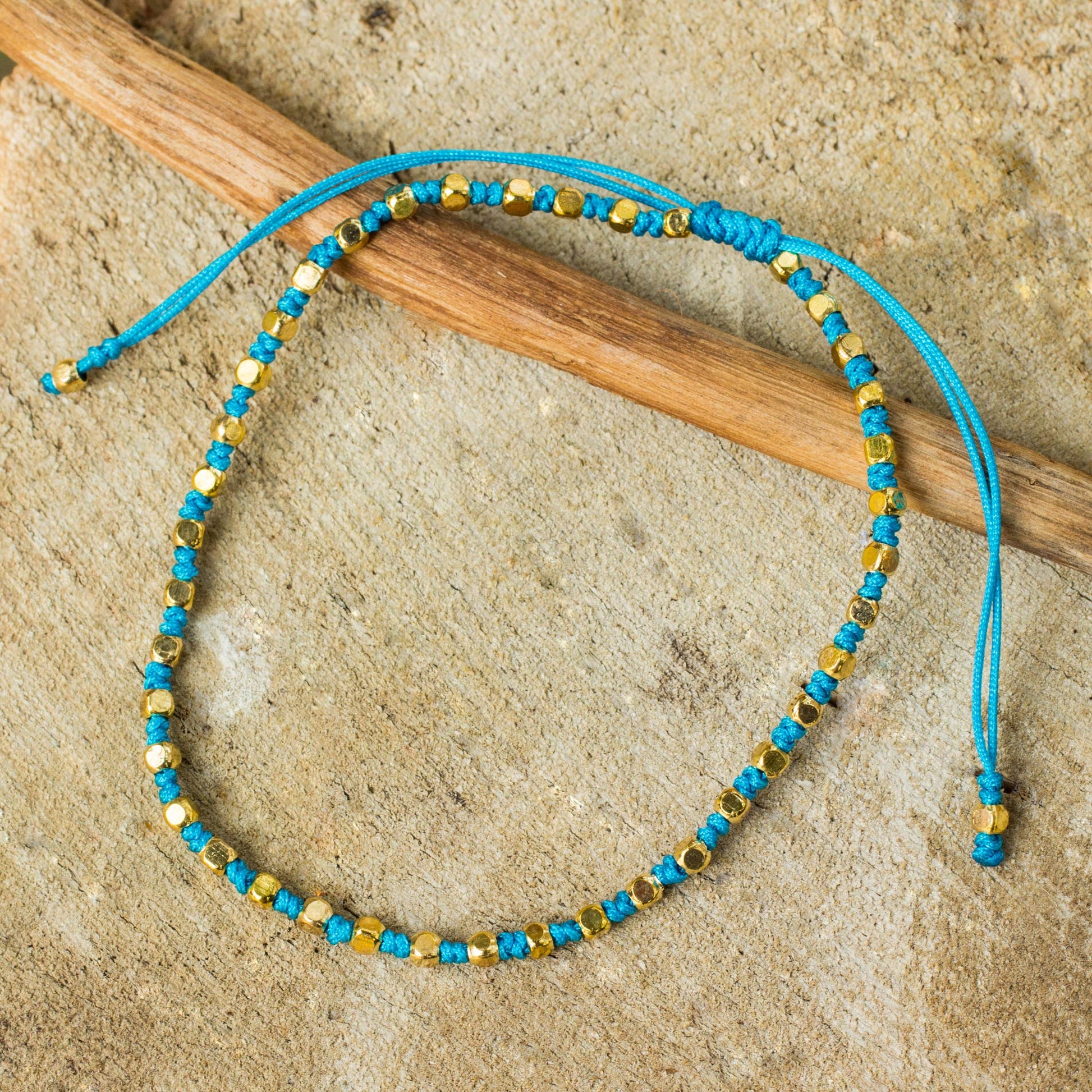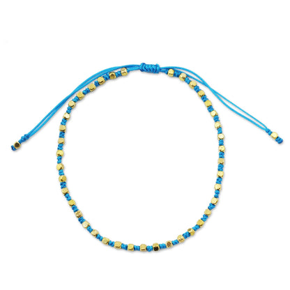 Sky Blue Boho Chic Fair Trade Handcrafted Gold Accent Macrame Bracelet