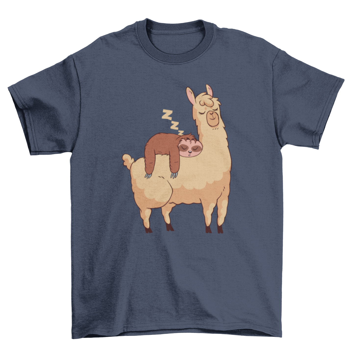 Sleeping Sloth Riding Llama Illustration T-Shirt