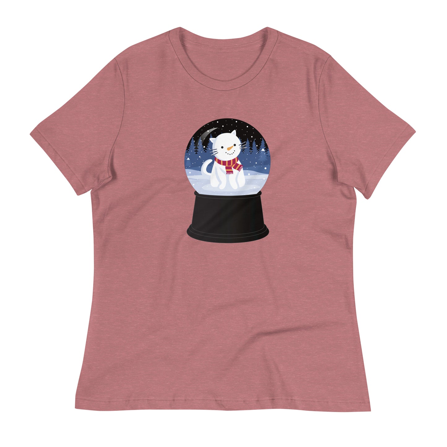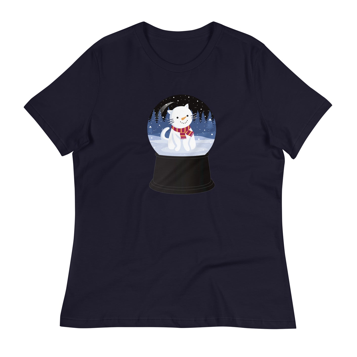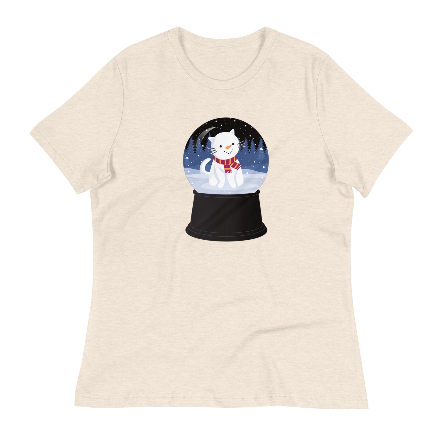Snowman Kitty Snow Globe Women's Relaxed T-Shirt
