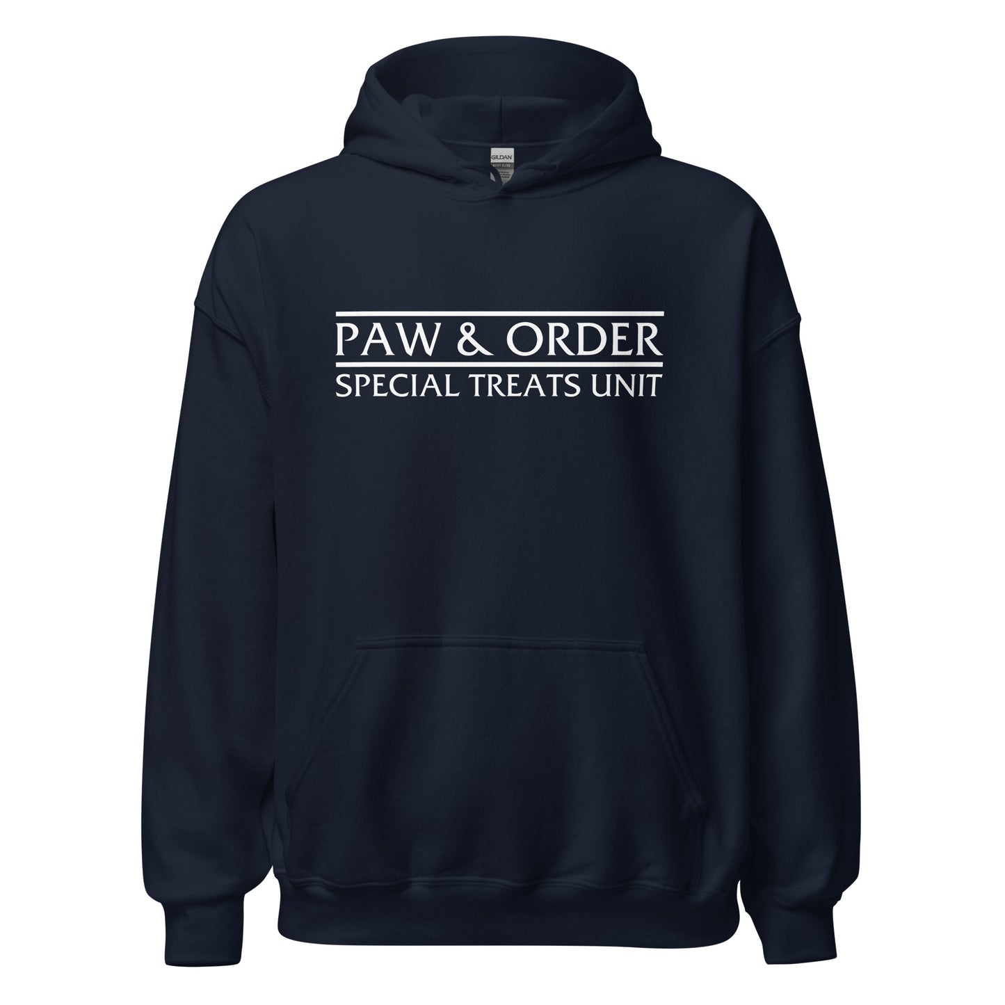 Wrap yourself in cozy comfort with this ultra-soft Special Treats Unit hooded sweatshirt, perfect for staying warm while spoiling your favorite furry friends. The smooth air-jet spun fabric and relaxed fit make it your go-to layer for walks, cuddle time, or treat-dispensing missions. A double-lined hood, roomy pouch pocket, and sturdy construction keep you comfy and prepared for every tail-wagging adventure. Whether you're a dog mom, pet dad, or everyday animal hero, this pet lover hoodie proudly shows that handing out treats is serious business.