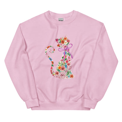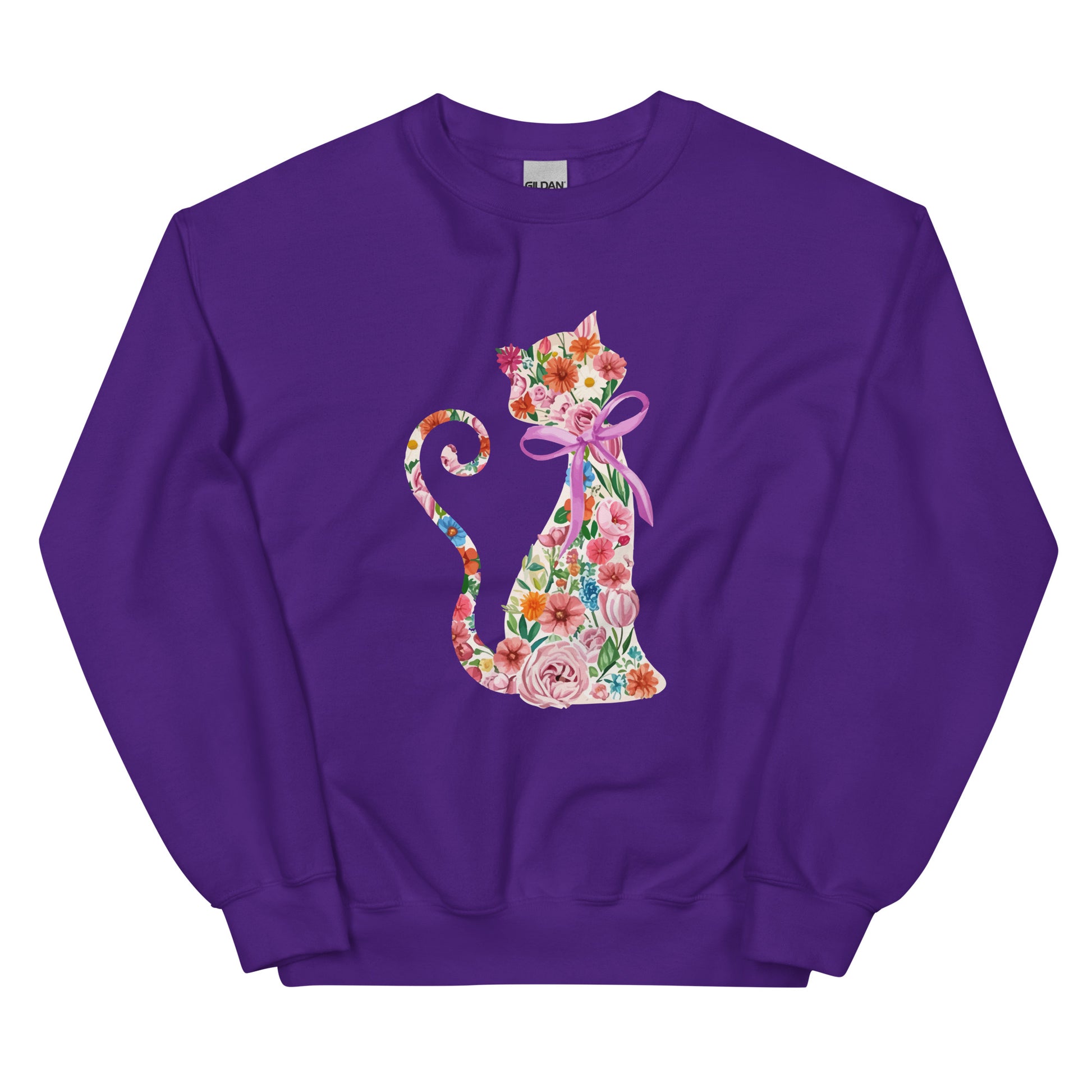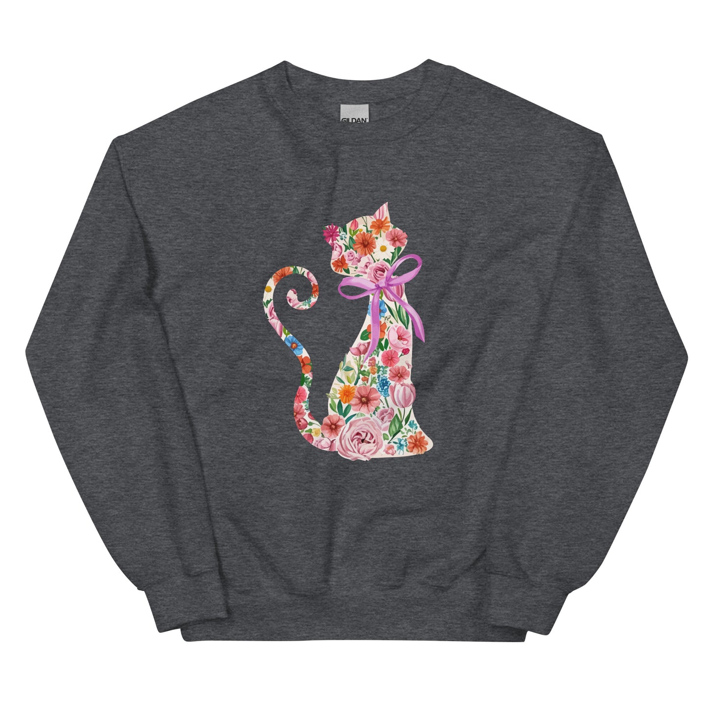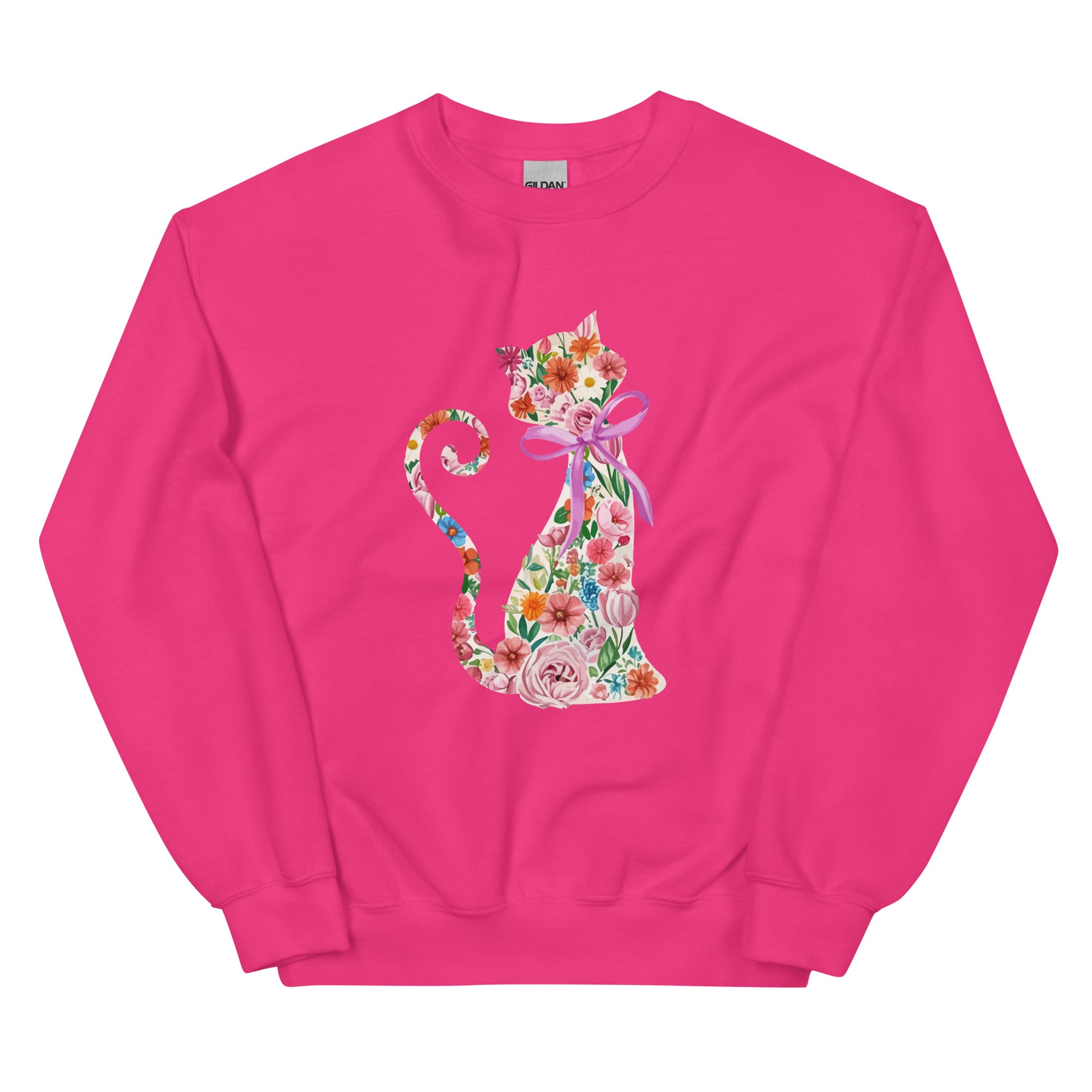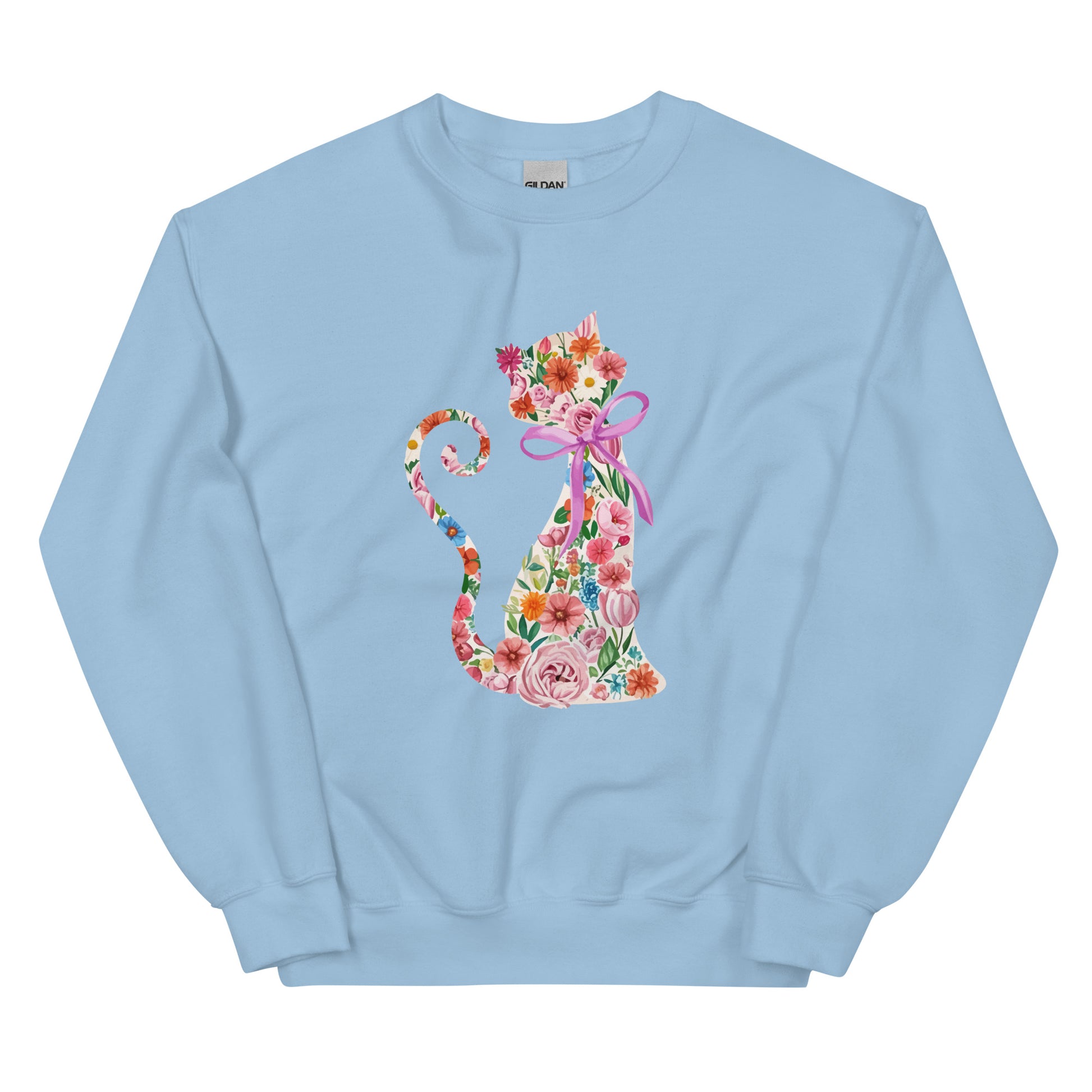 This super soft short crewneck sweatshirt is perfect for those who love cats and the springtime. This sweet kitten is adorned with all types of flowers that is perfect for celebrating warmer weather.
