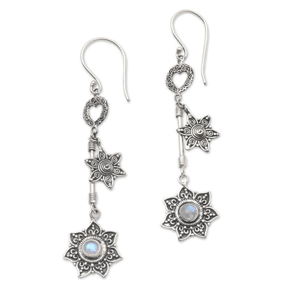Starflowers Sterling and Rainbow Moonstone Dangle Earrings
