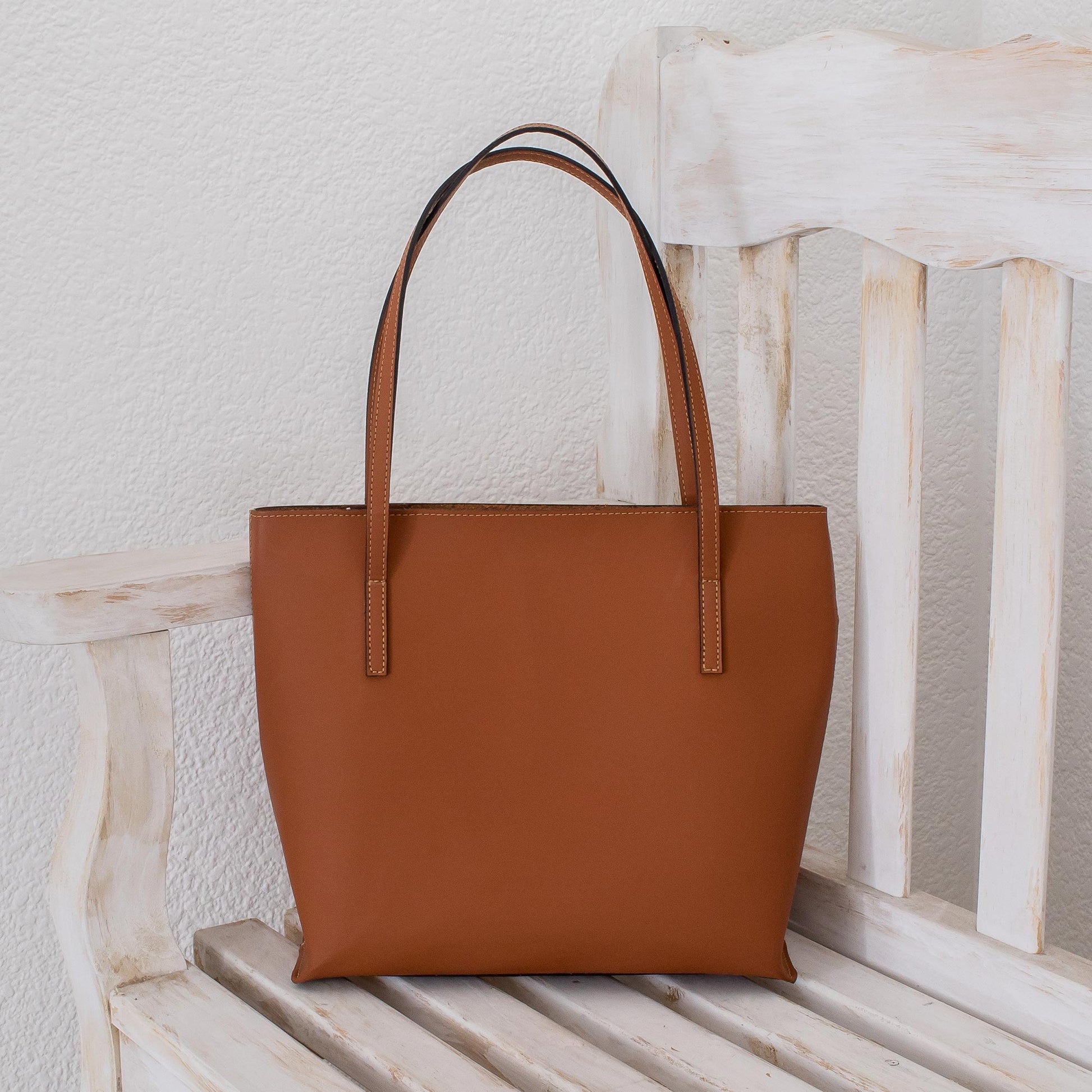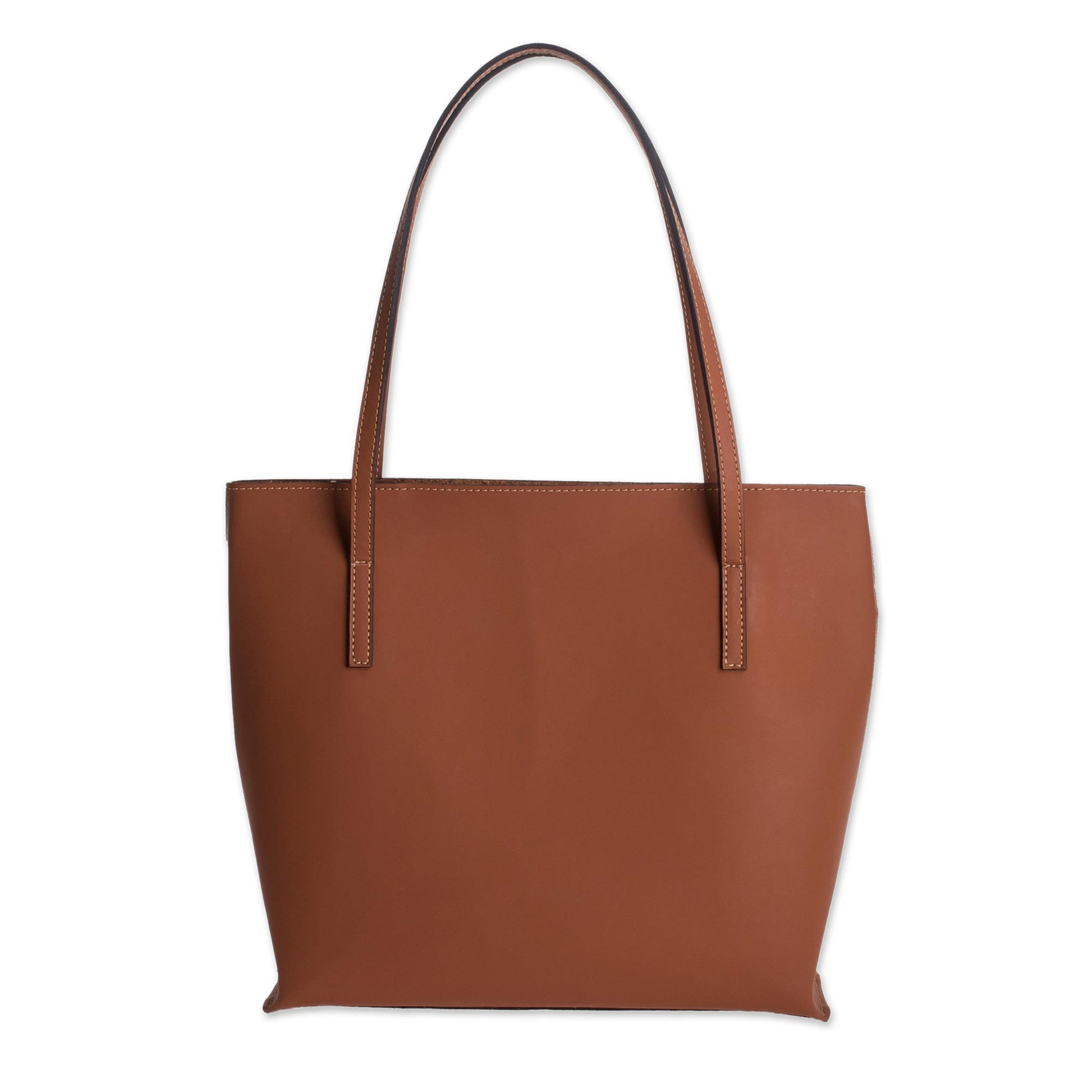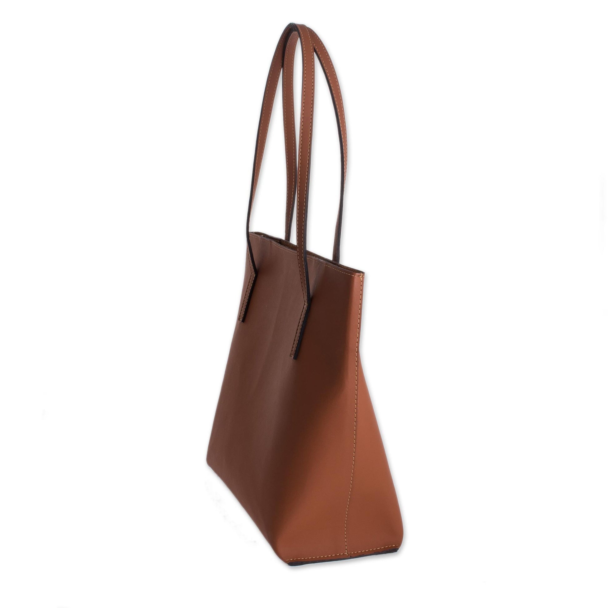 Sublime Elegance in Spice Bonded Leather Shoulder Bag in Solid Spice from El Salvador