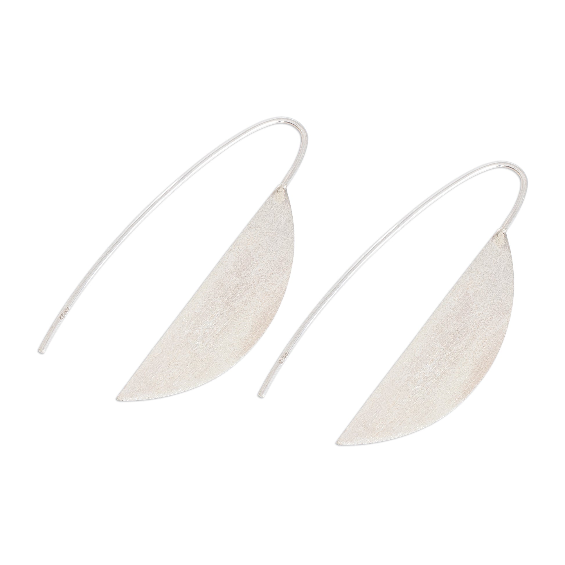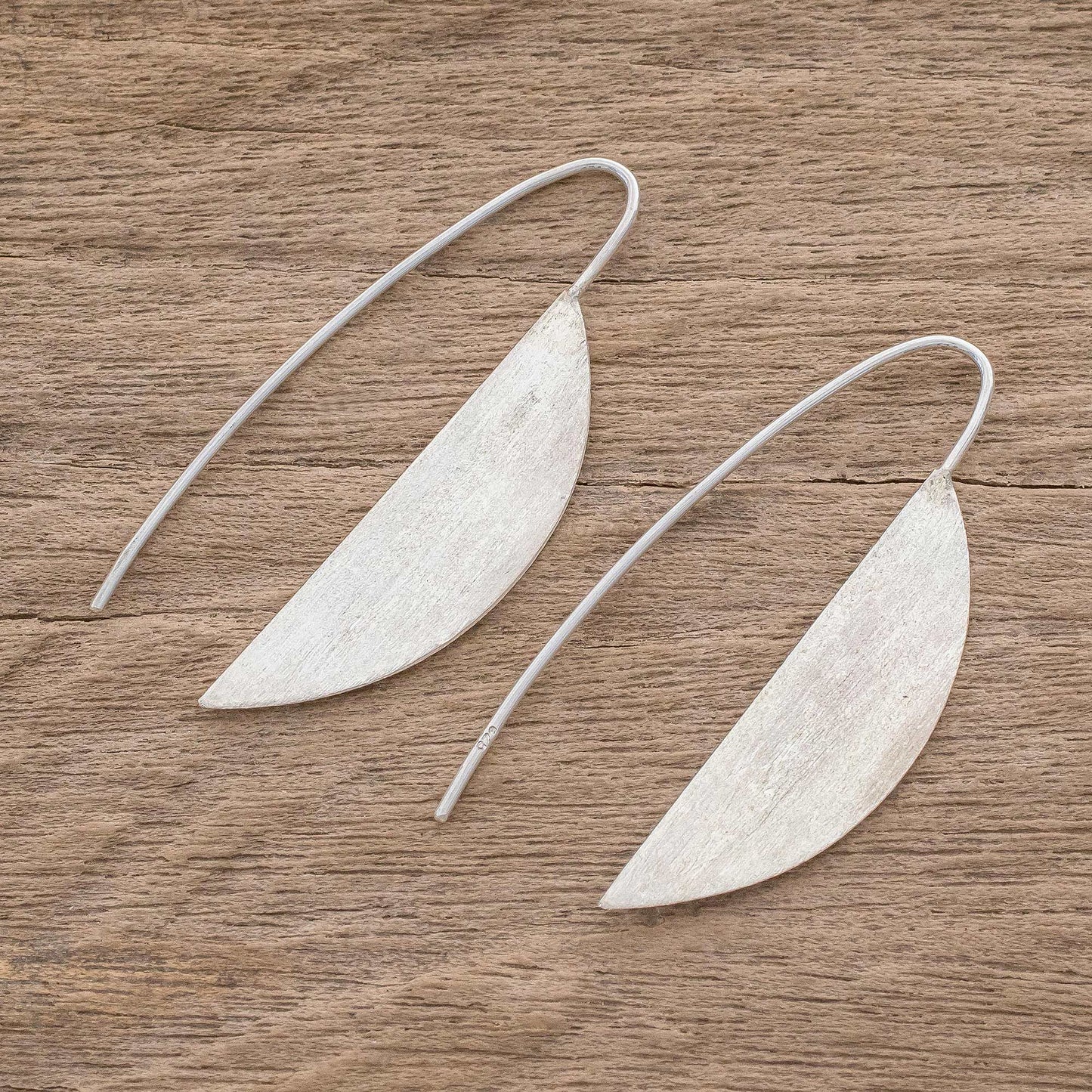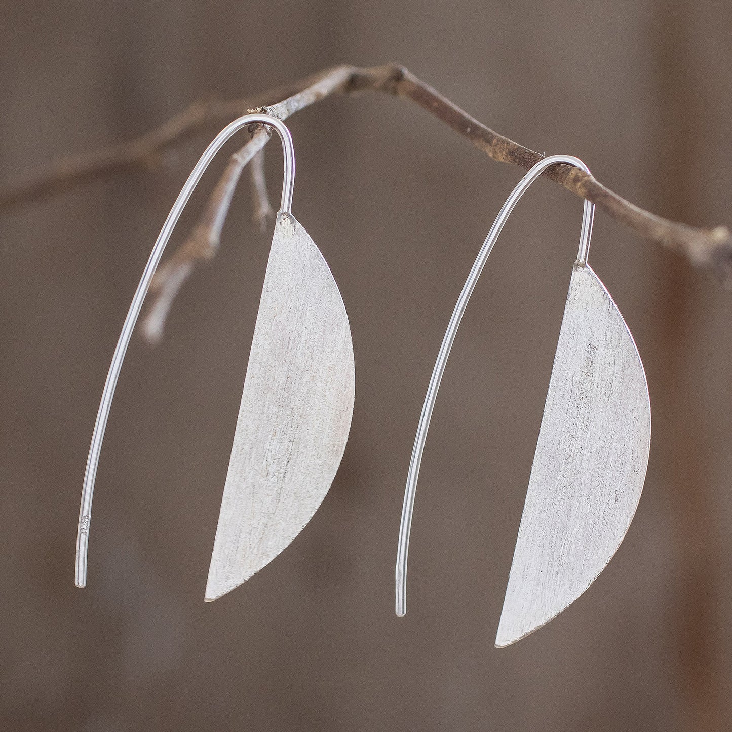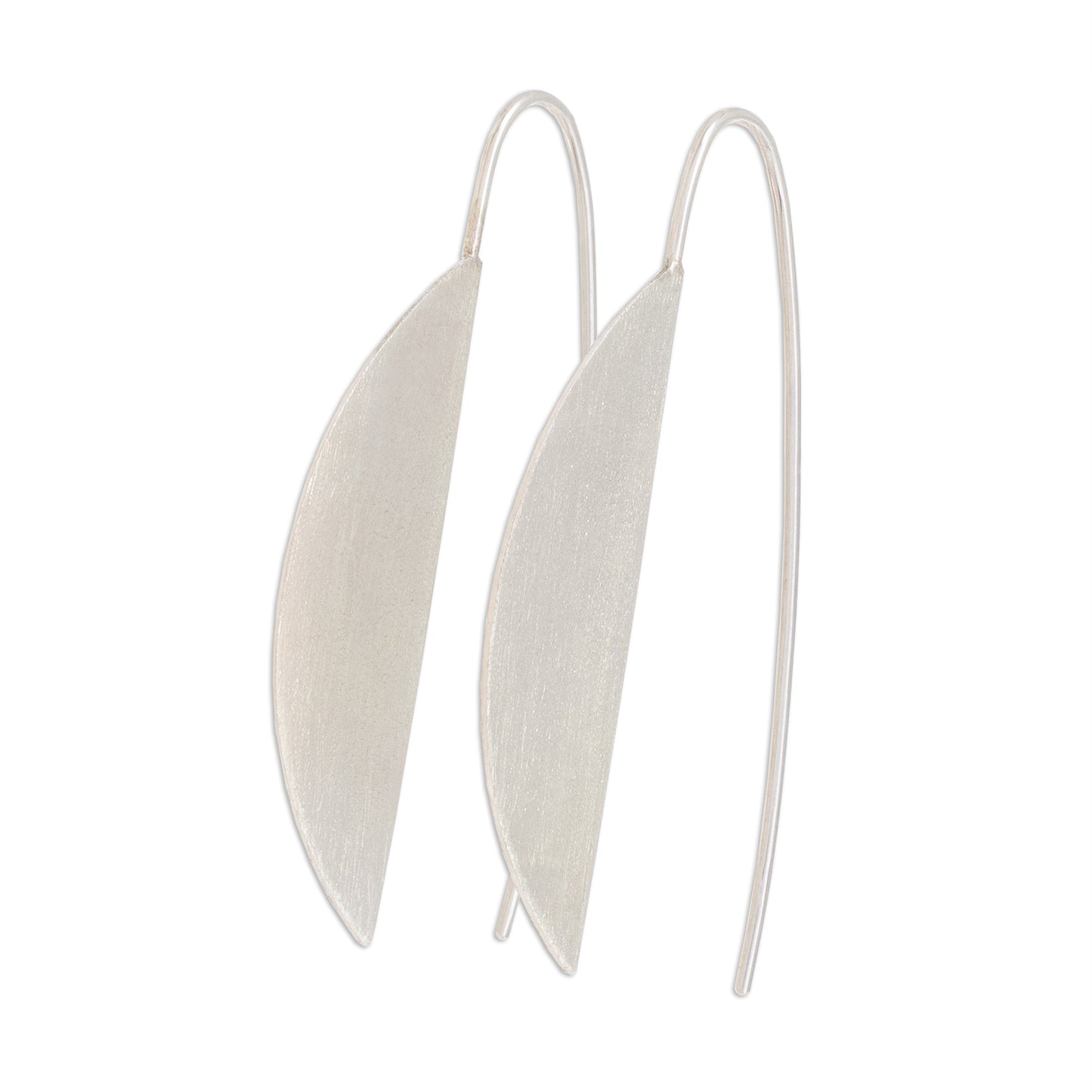 Inspired by nature, Guatemalan artisan Pablo Roquel creates this modern pair of drop earrings. Two leafy shapes are handcrafted from sterling silver, treated with a brushed-satin finish that captures the light. These earrings adorn the ears on long, elegant hooks of sterling silver.