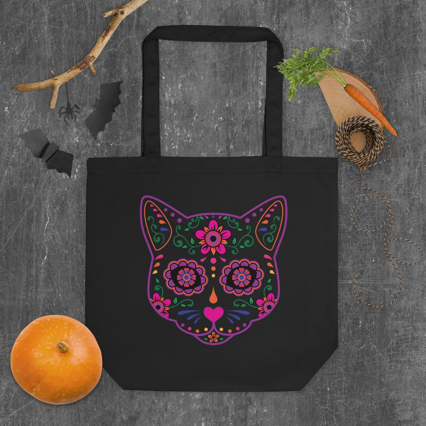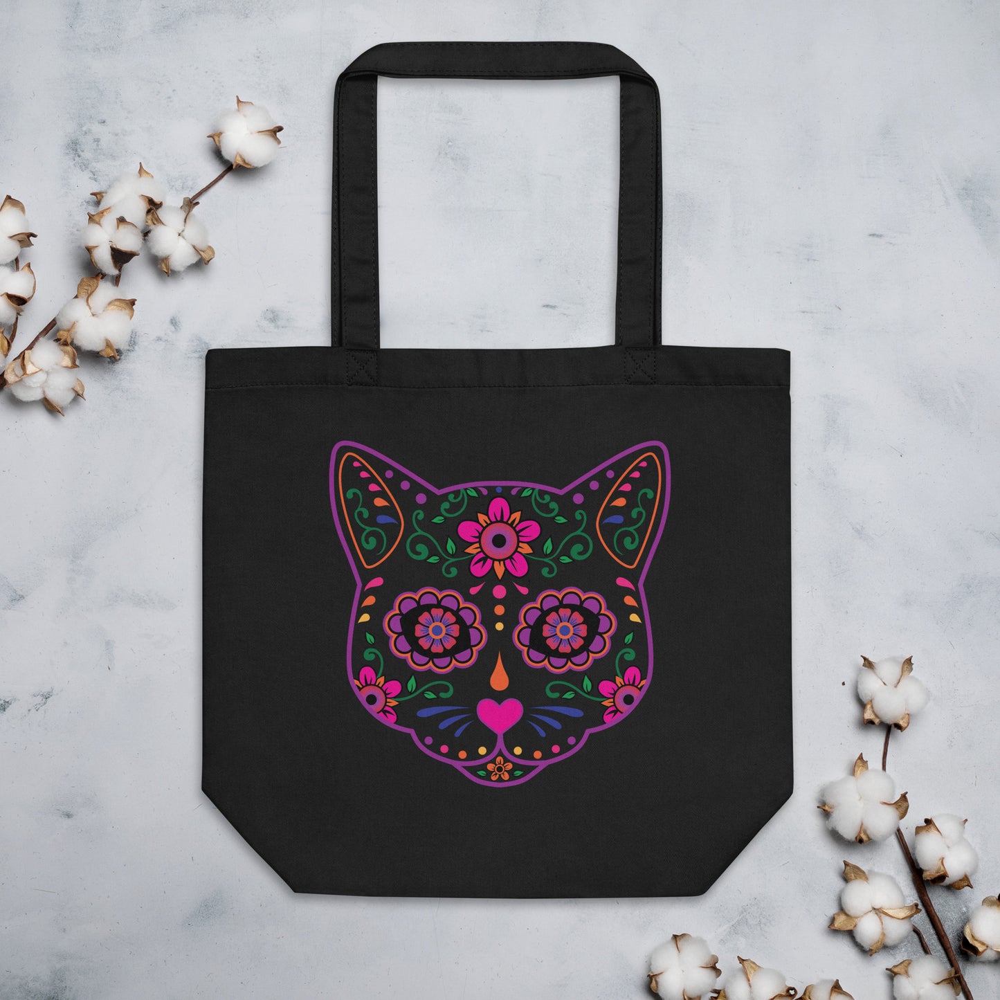 A fun sugar skull of a cat adorns this tote bag that's perfect for carrying all their favorite things - or cat supplies! • 100% certified organic cotton 3/1 twill