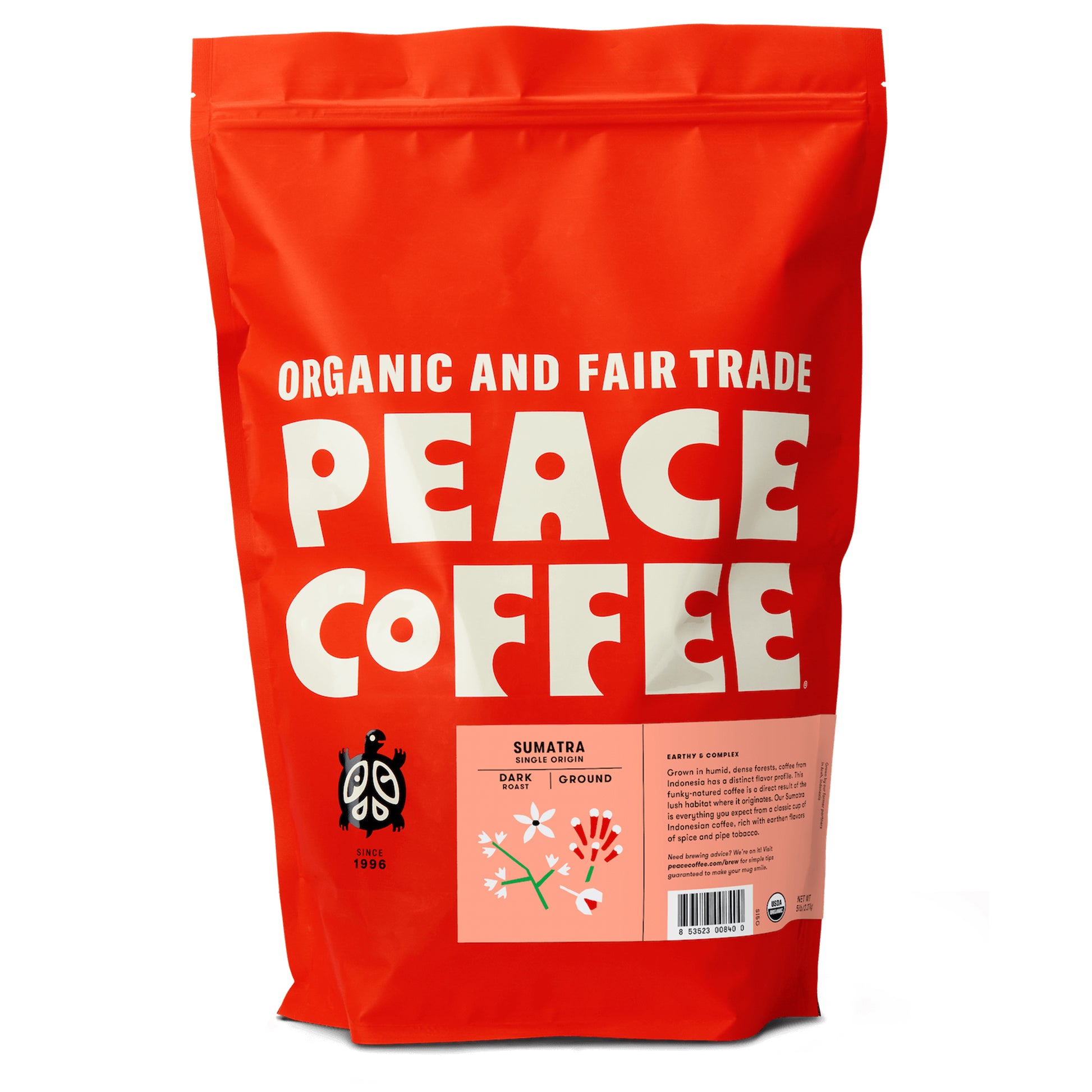 Grown in humid, dense forests, coffee from Indonesia has a distinct flavor profile. This funky-natured coffee is a direct result of the lush habitat where it originates. Peace Coffee's Sumatra is everything you expect from a classic cup of Indonesian coffee, rich with earthen flavors of spice and pipe tobacco.