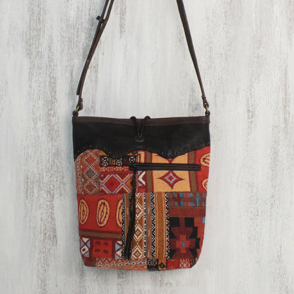 Sunrise Journey Leather Accent Cotton Blend Adjustable Sling from Thailand