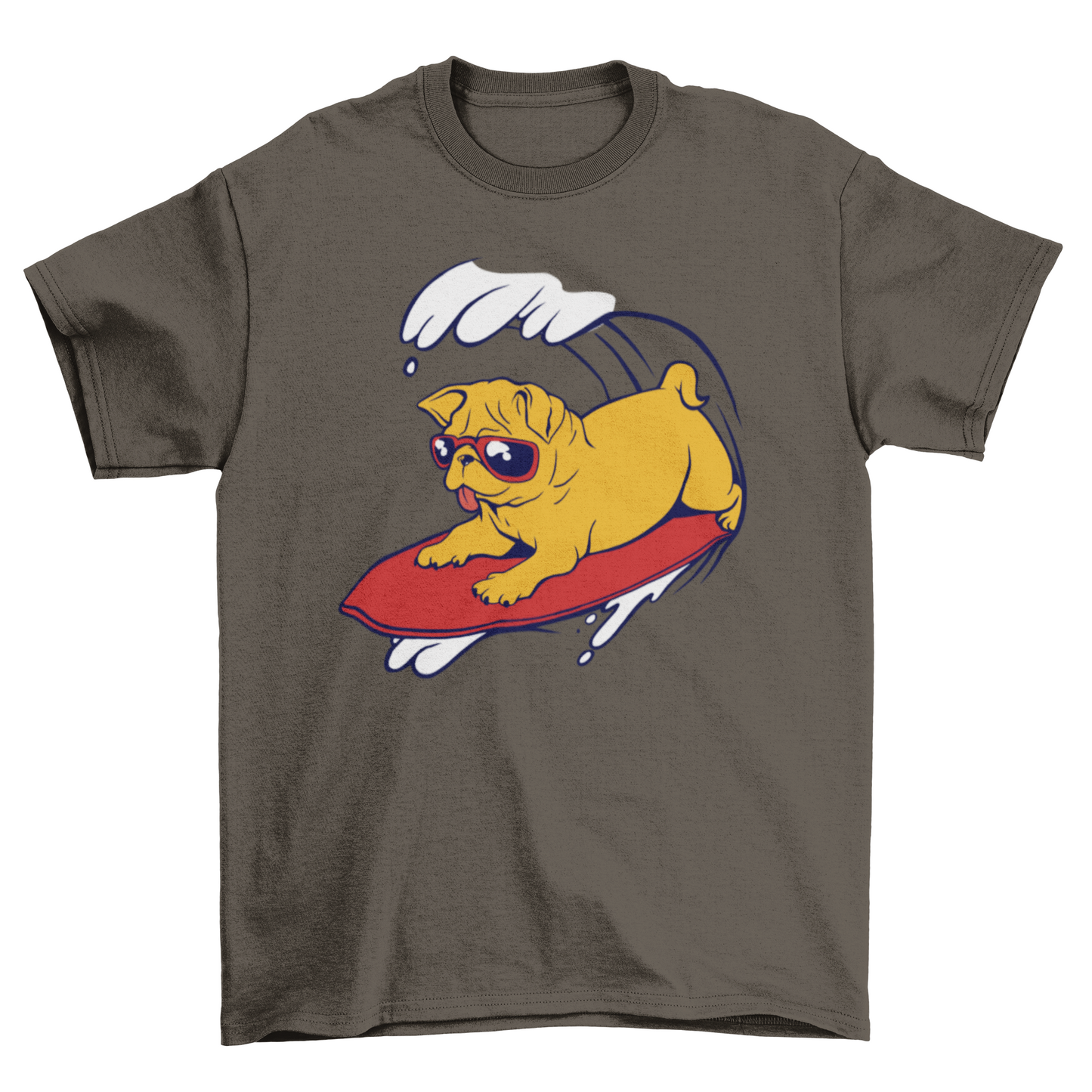 Ride the wave of style with a unisex crew neck tee, perfect for every dog person's wardrobe. Made from 100% premium cotton, this tee guarantees ultimate comfort and durability. Available in a vibrant array of colors, it features an adorable pug surfing with sunglasses on the front, adding a splash of fun to your look. Embrace the playful spirit and make a statement wherever you go!