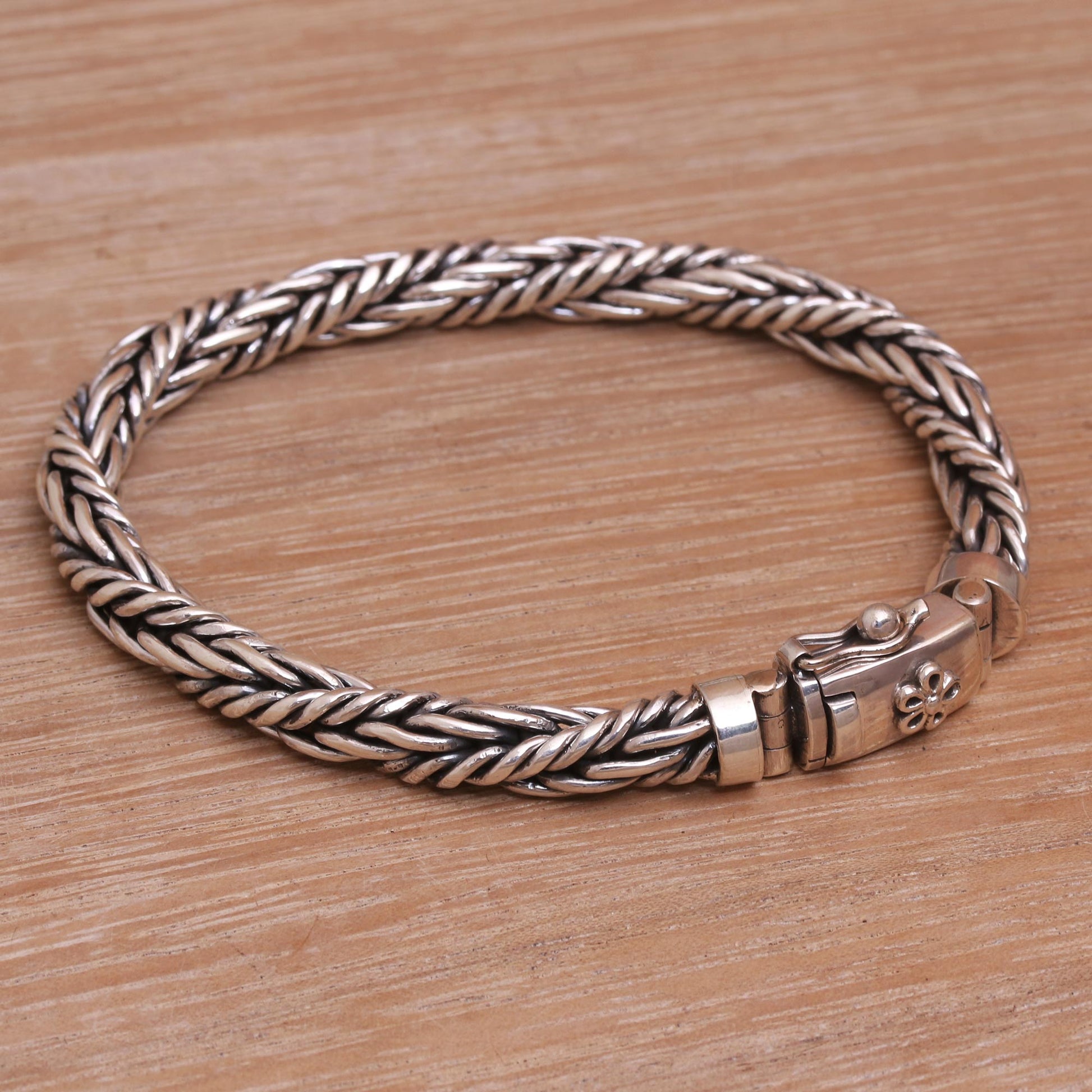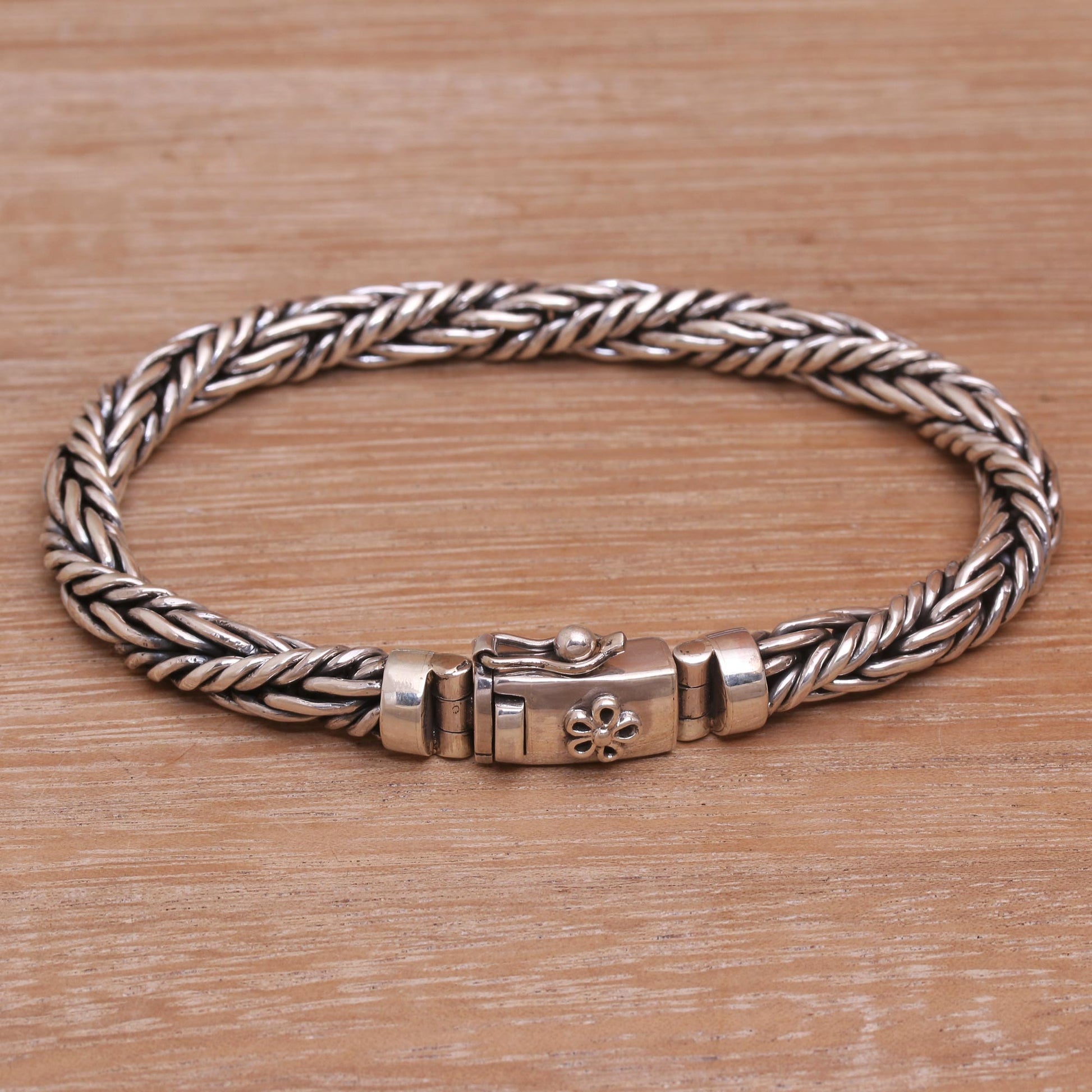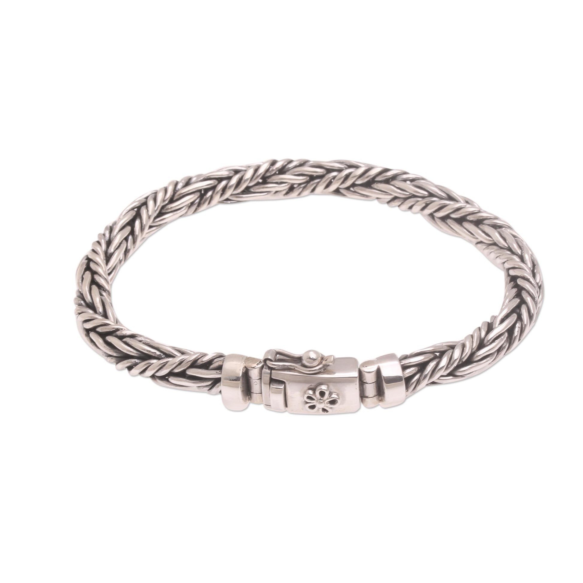 Bali's Cahya Krisna presents a fabulous chain bracelet that will become your go-to accessory. Twisting sterling silver foxtail chain is given round end caps and a box clasp decorated with a petite flower. The sterling silver's contrasting dark and light finishes add heft to the classic simplicity of the accessory's design. Wear it every day to work and on the weekends to brunch and the movies.