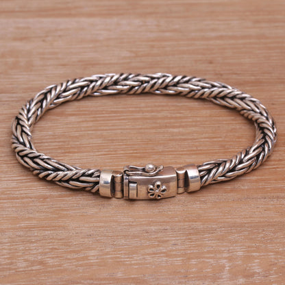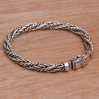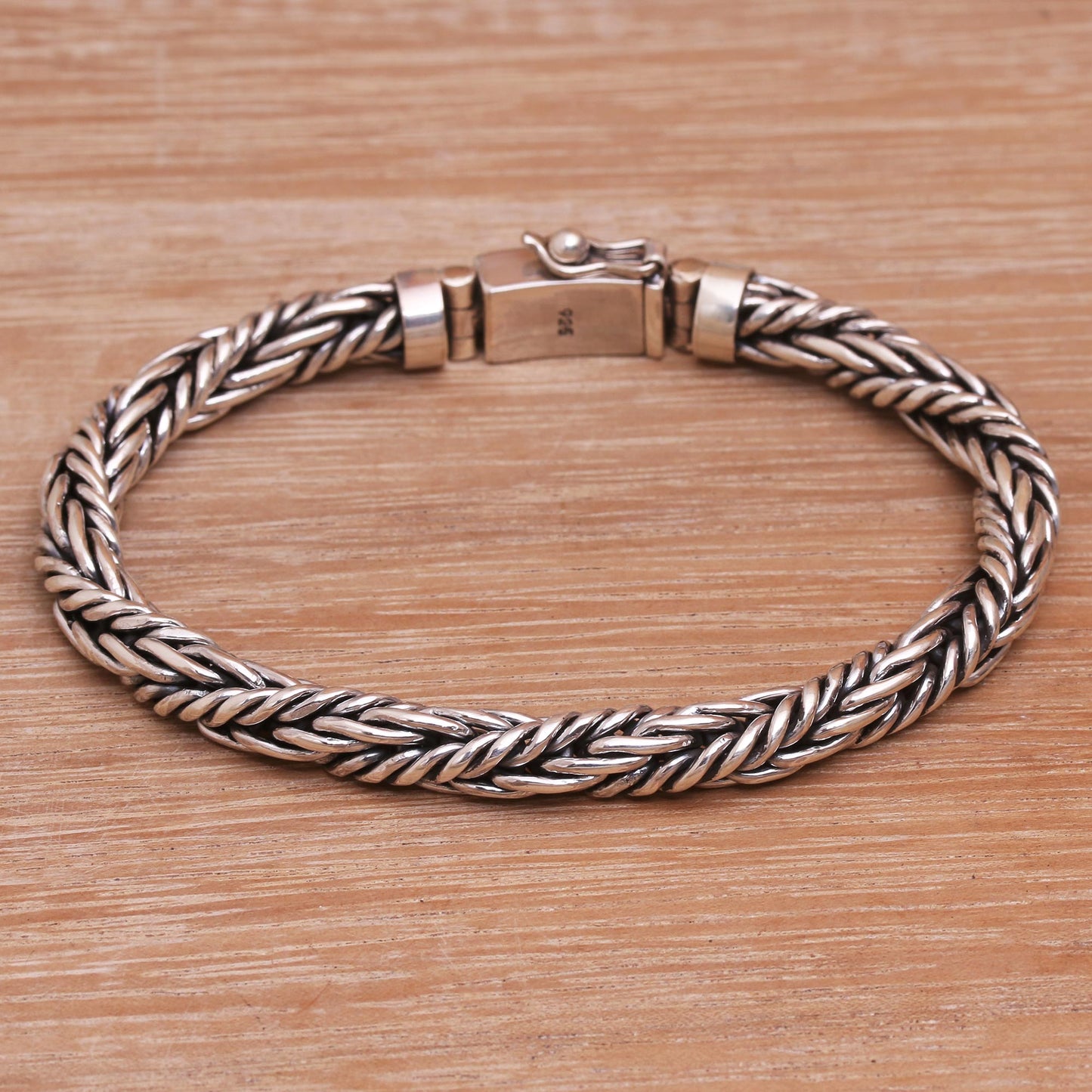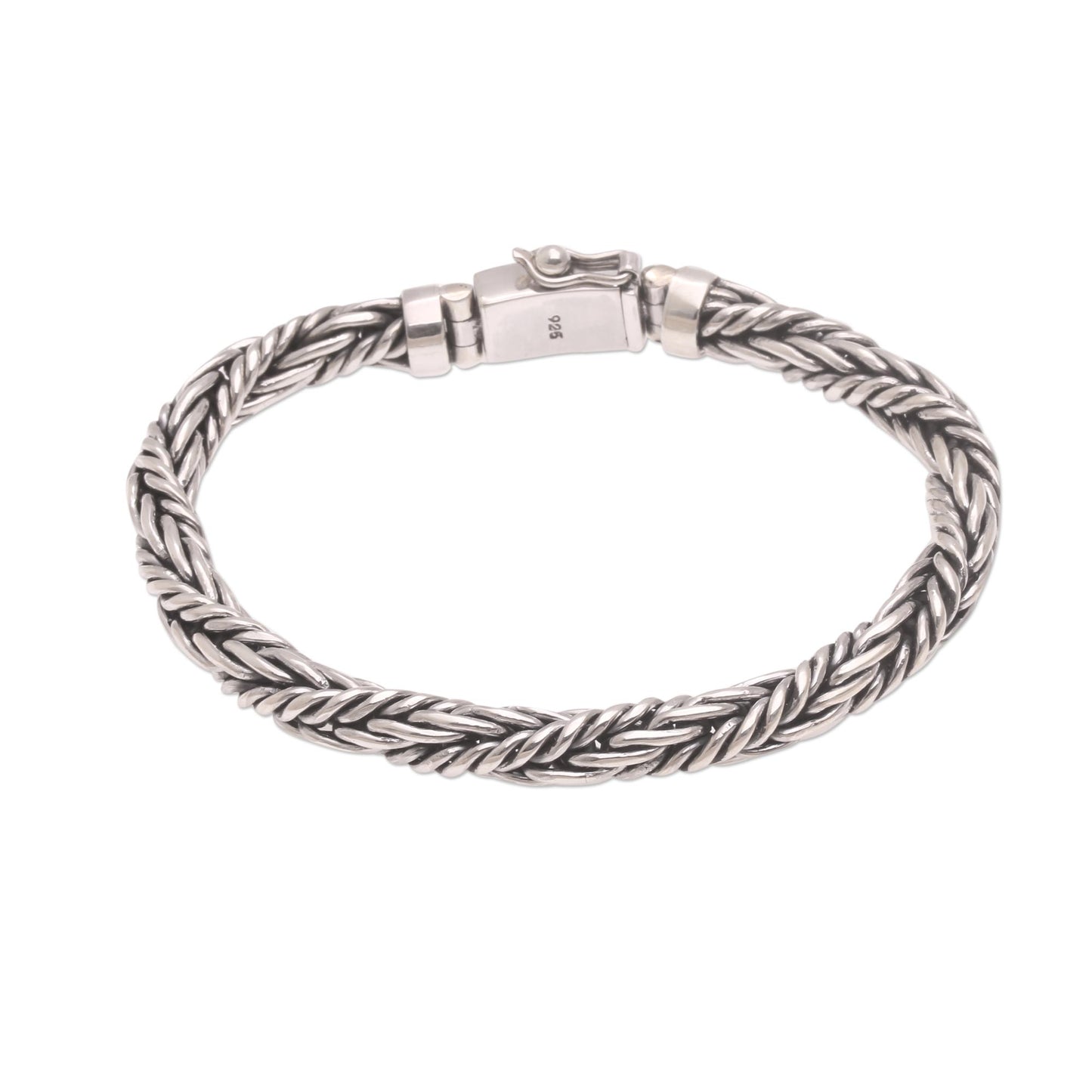 Bali's Cahya Krisna presents a fabulous chain bracelet that will become your go-to accessory. Twisting sterling silver foxtail chain is given round end caps and a box clasp decorated with a petite flower. The sterling silver's contrasting dark and light finishes add heft to the classic simplicity of the accessory's design. Wear it every day to work and on the weekends to brunch and the movies.