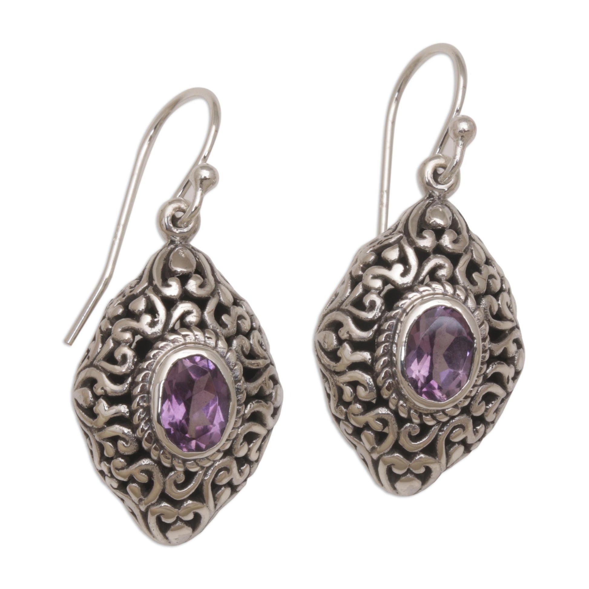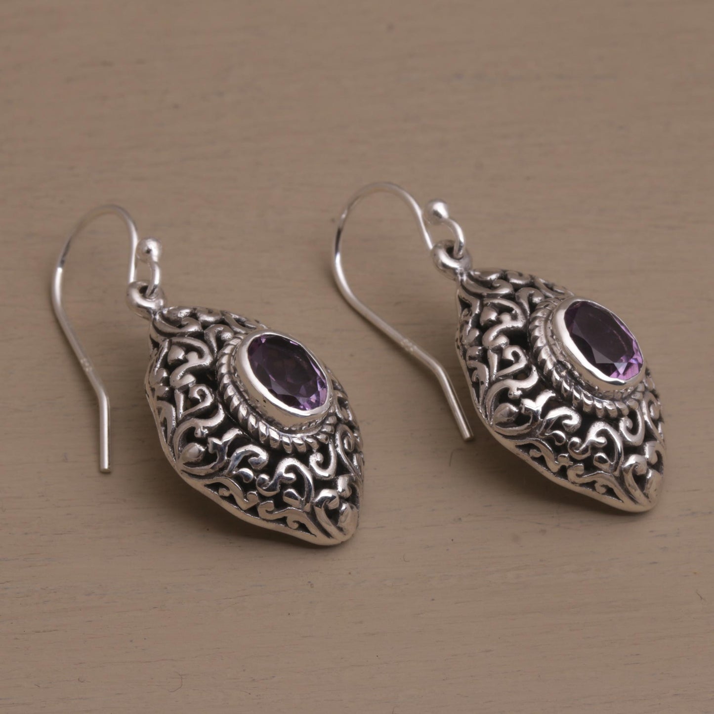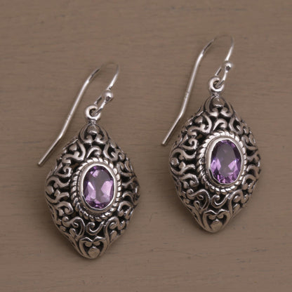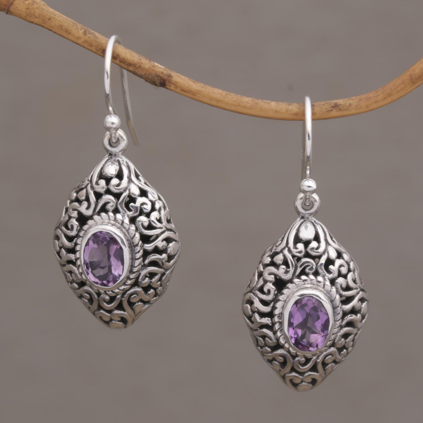 Tabanan Tendrils Amethyst and Sterling Silver Dangle Earrings from Bali