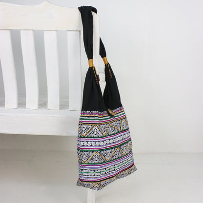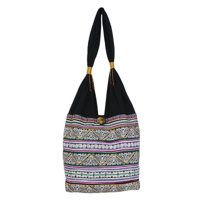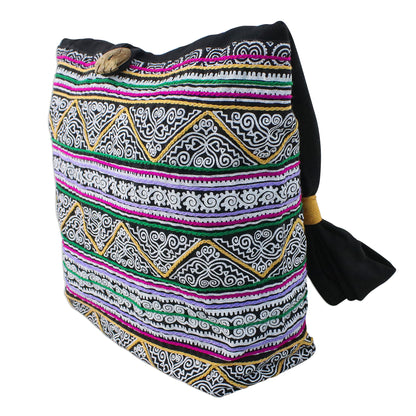 Thai Spirals Multicolored Embroidered Cotton Shoulder Bag from Thailand