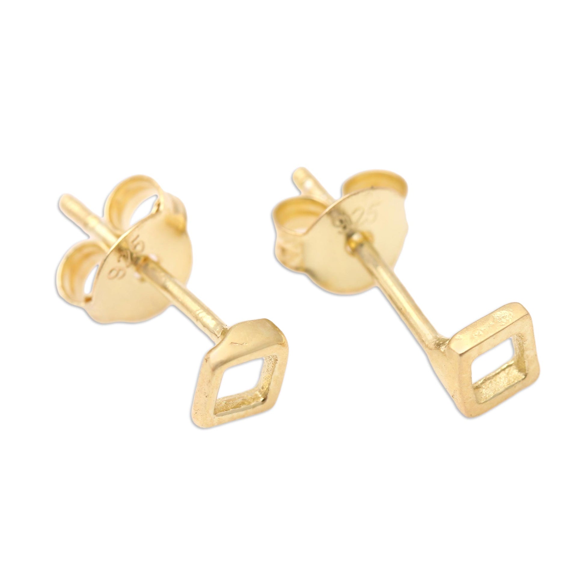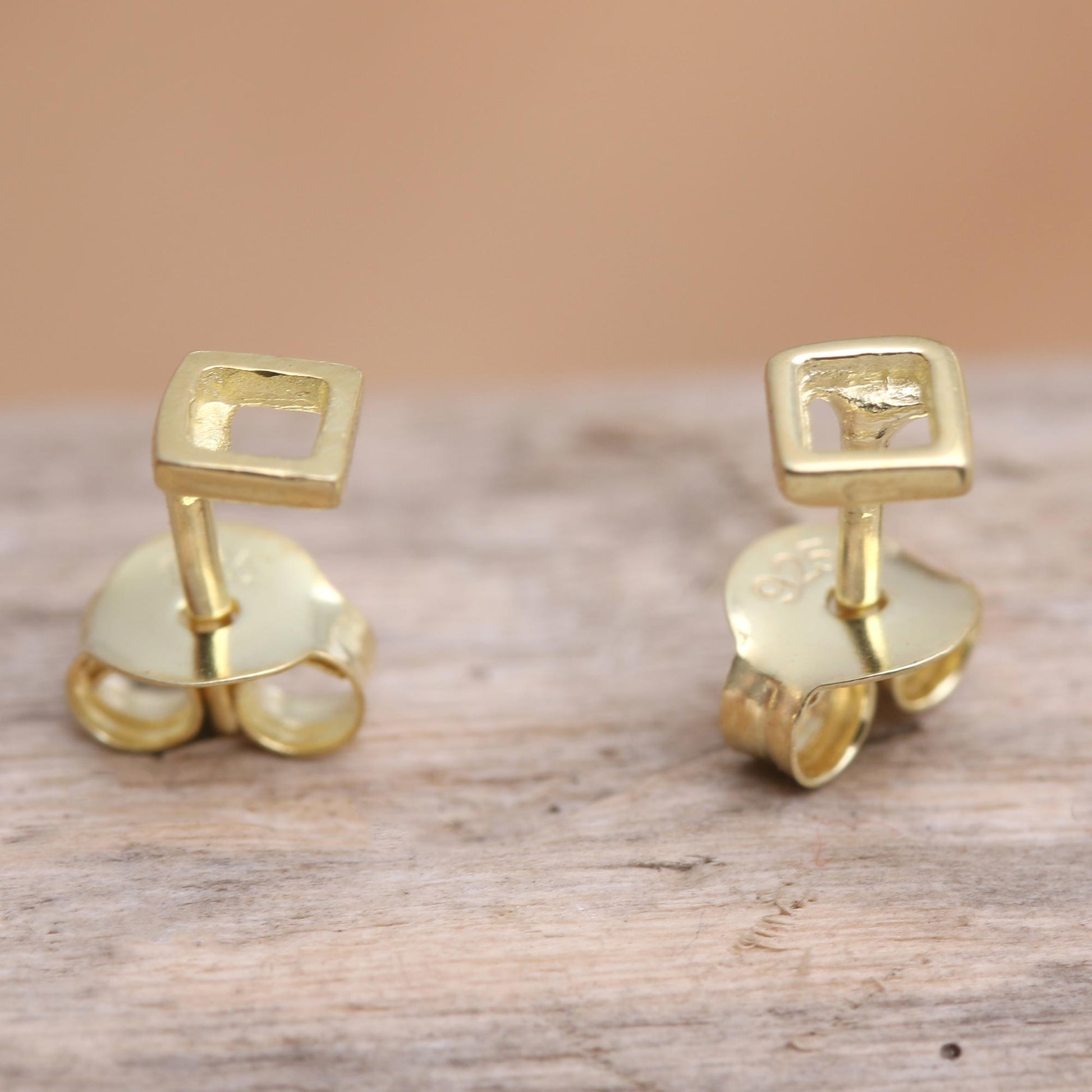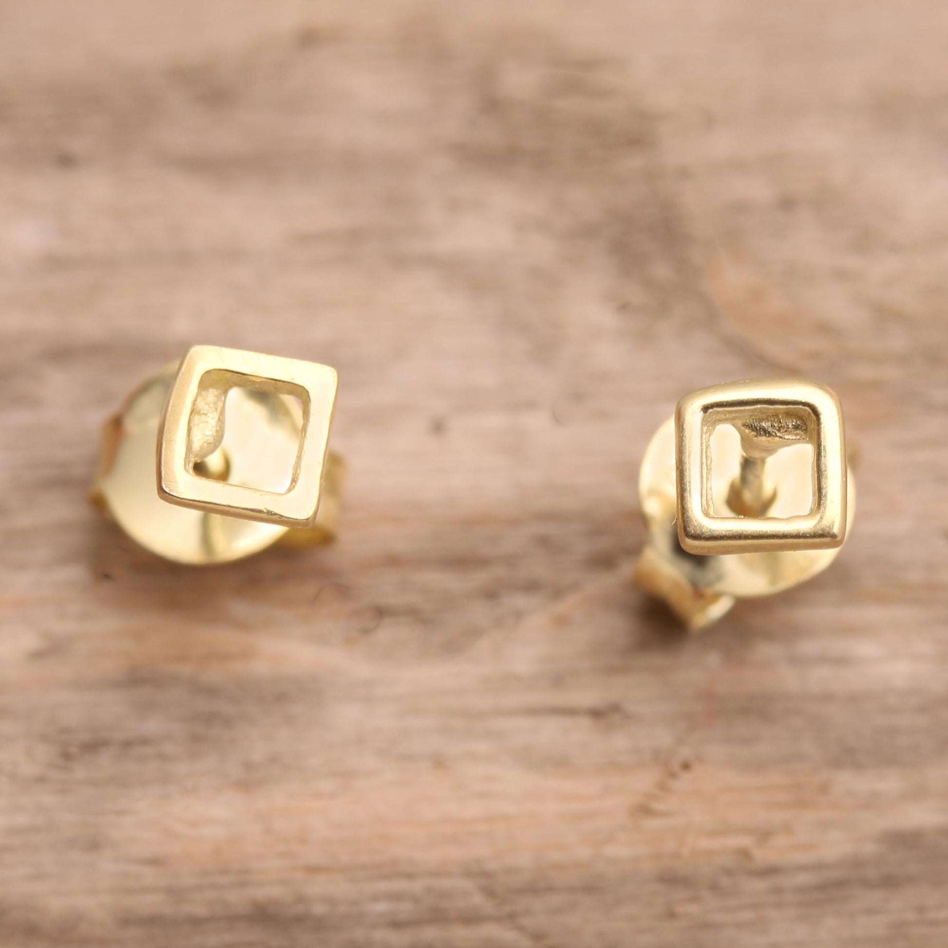 Designed with a whimsical geometric motif, Candradewi's petite stud earrings are a big dose of fun. The Balinese artisan hand crafts the square-shaped earrings from sterling silver, plating the precious metal in 18k gold and finishing the pair with gold-plated posts.