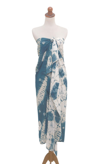 Toya Segara Bliss Wave Motif Tie-Dyed Rayon Sarong from Java