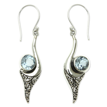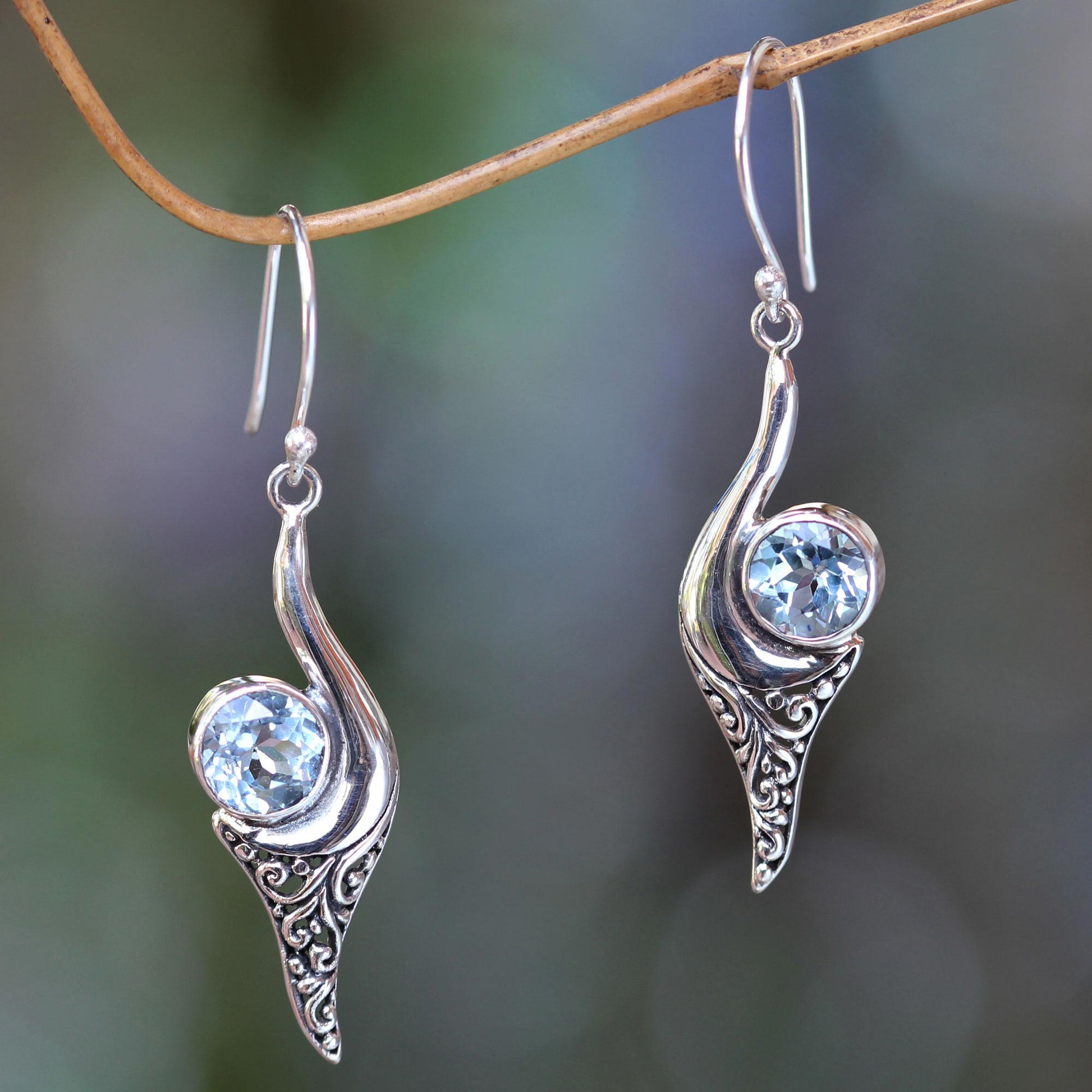 Modern in design, these earrings are rich in Balinese artistry. Komang Wijayana presents handcrafted sterling silver earrings with blue topaz treasures totaling 2 gemstone carats.