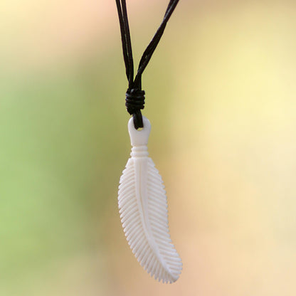 Tropical Palm Artisan Crafted Leather and Bone Palm Leaf Pendant Necklace