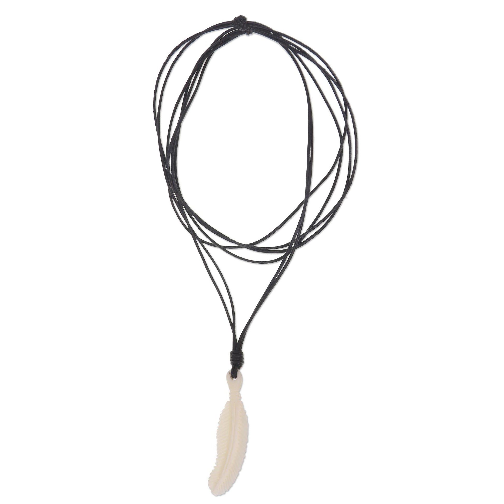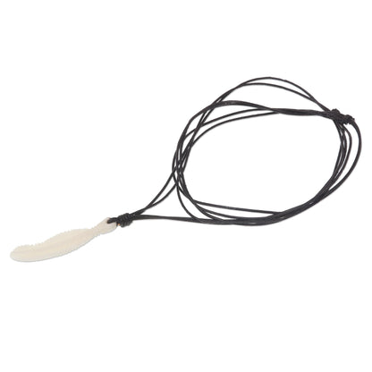 Realistically carved by hand, a palm frond graces this unique artisan-crafted necklace. Made Wardika displays the tropical Balinese pendant on a cord of dark brown leather.